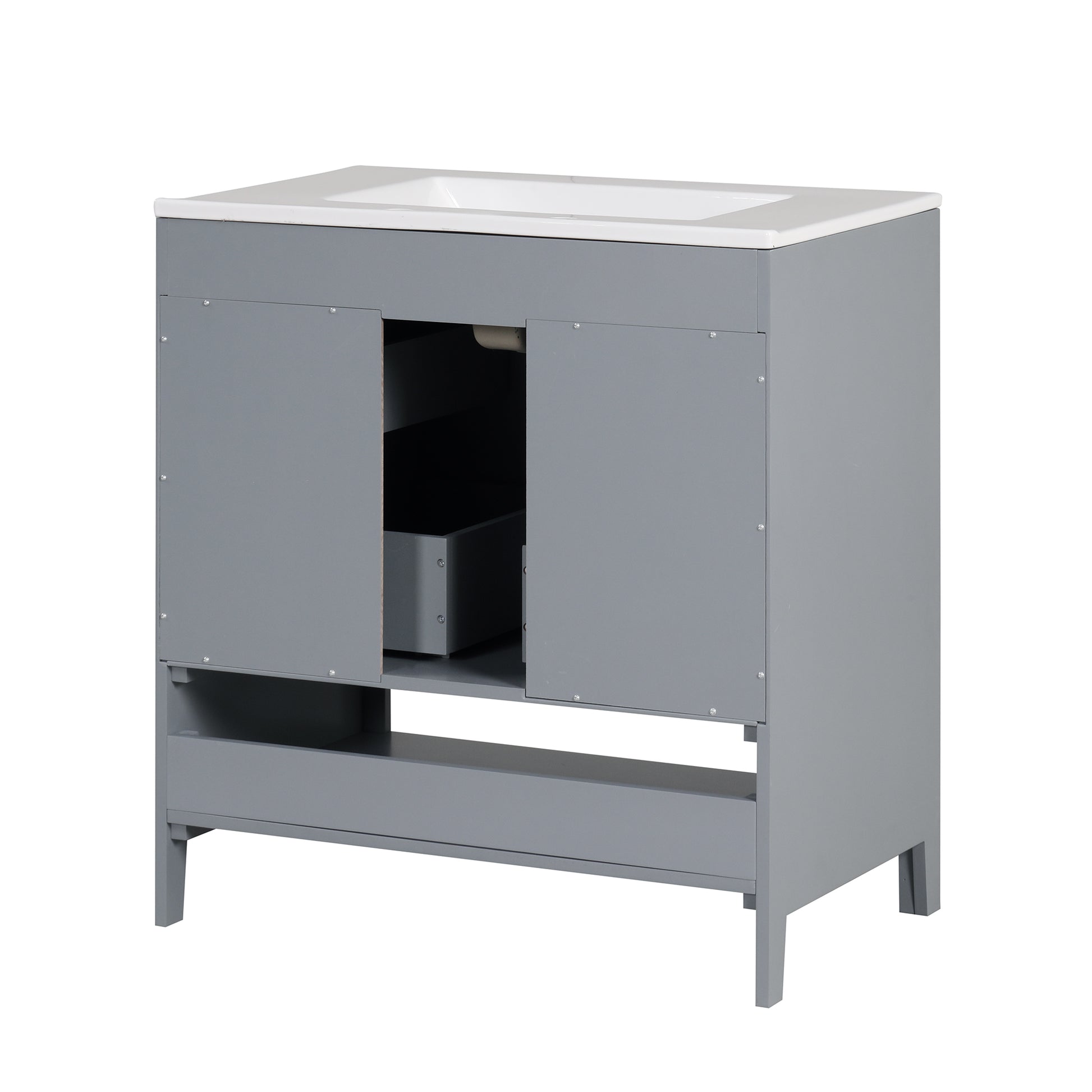 Product Name:30" Bathroom Vanity with Sink, Multi-functional Bathroom Cabinet with Doors and Drawers, Solid Frame and MDF Board, Grey