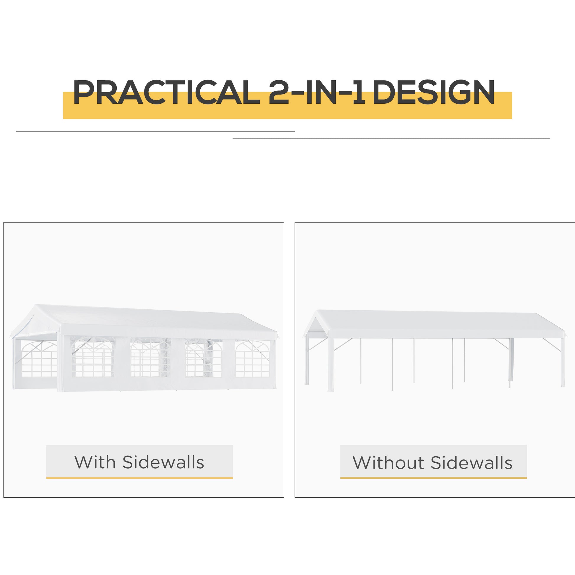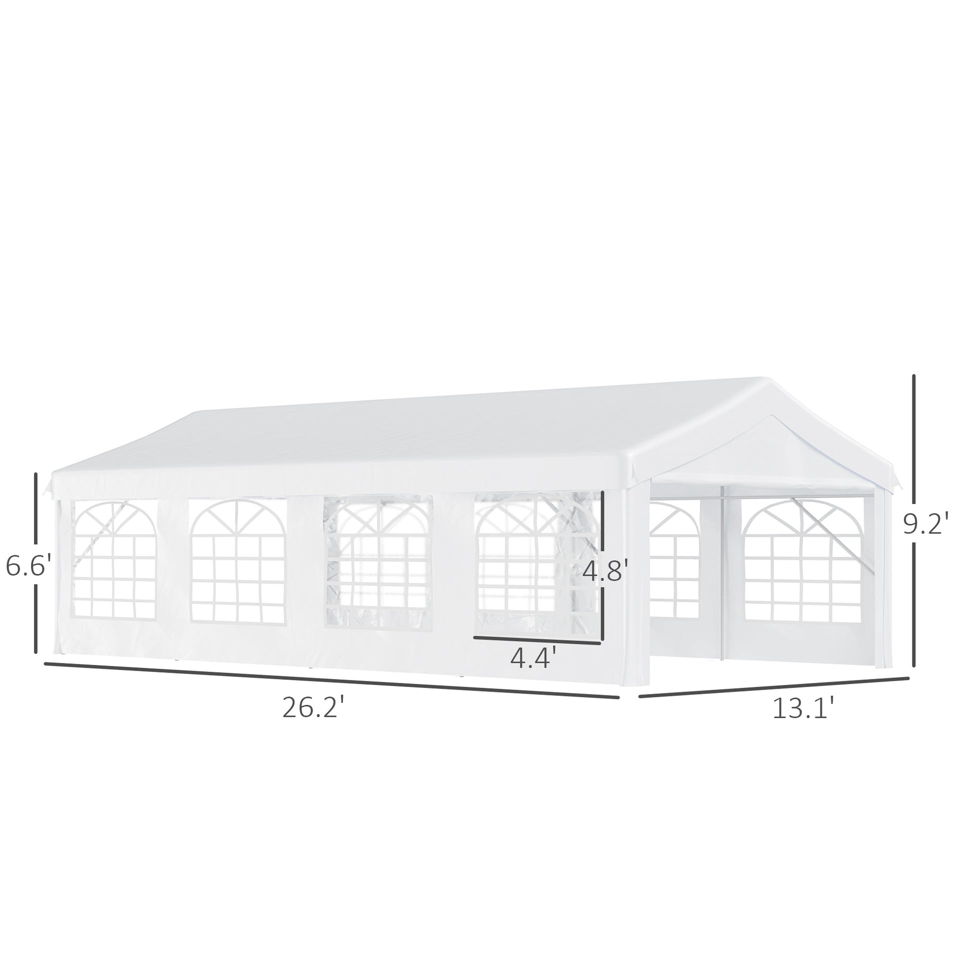 13' X 26' Heavy-Duty Outdoor Carport Party Event Tent, Patio Gazebo Canopy Pavilion With 4 Sidewalls & 8 Windows, White