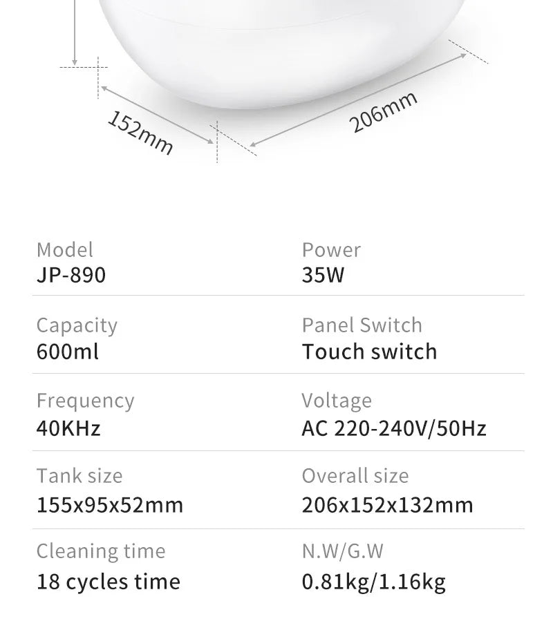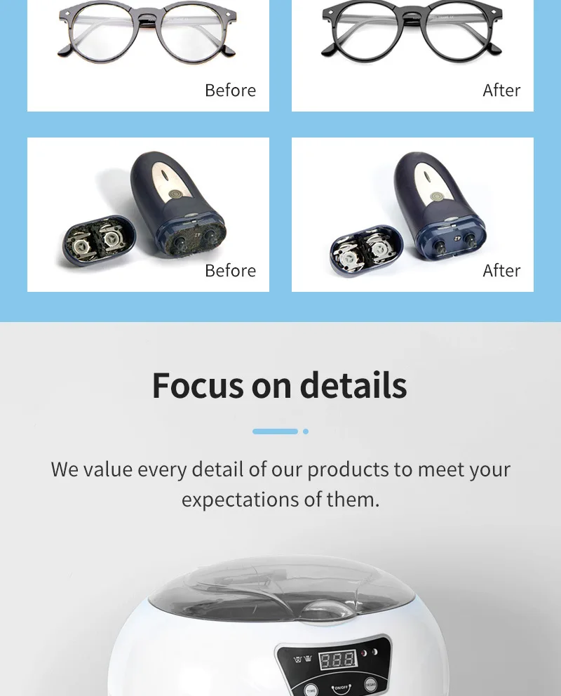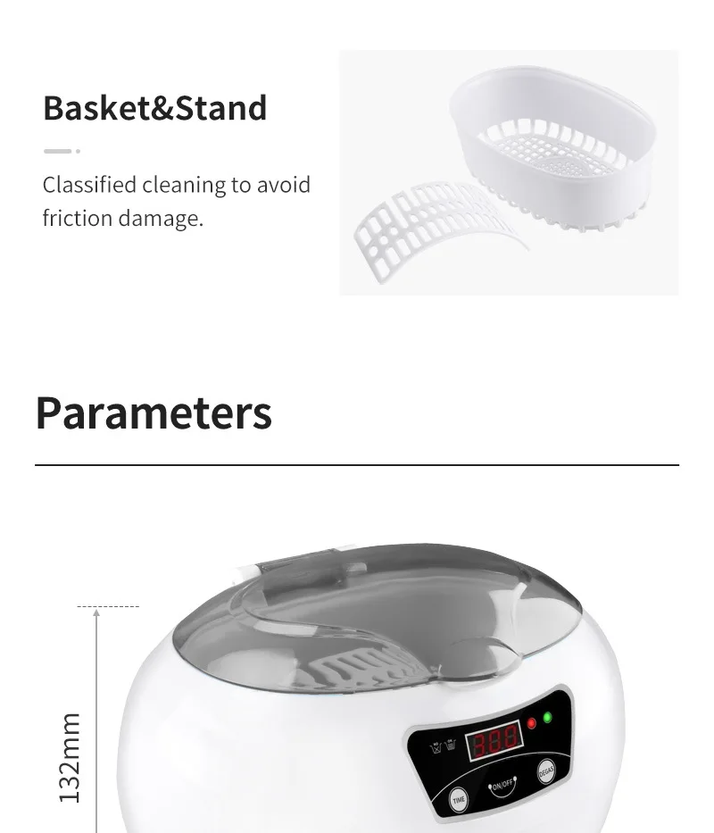 600ml Ultrasonic Cleaner Bath Timer for Jewelry Parts Glasses Manicure Stones Cutters Dental Razor Brush Ultrasound Sonic Boxc