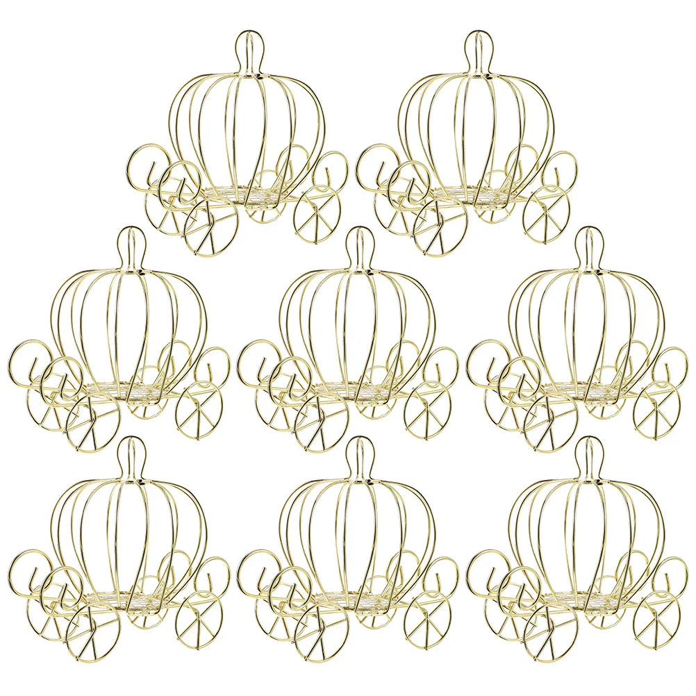 8pcs Pumpkin Carriage Centerpiece Candy Holder Halloween Wedding Party Candy Cart Container Tabletop Decoration