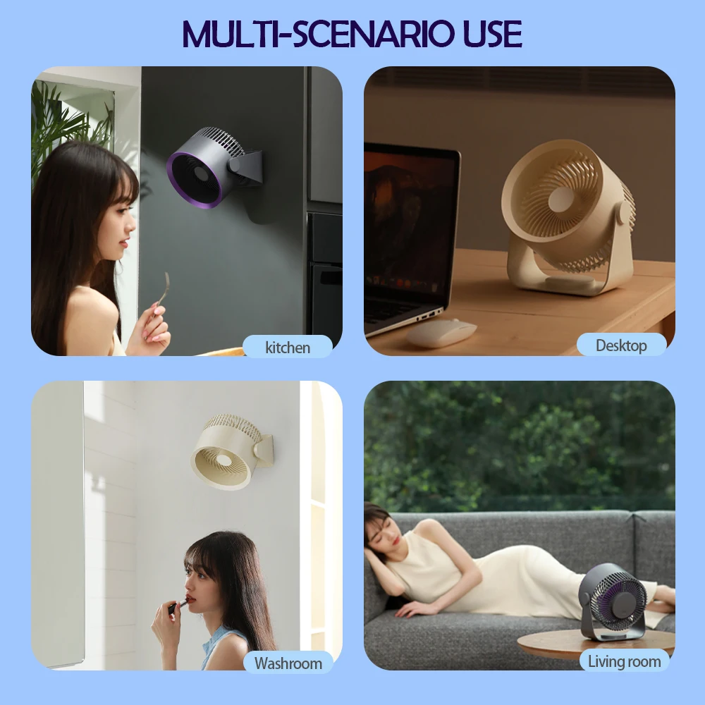 Multi-function Desktop Fan 4000mAh USB Charge Portable Wall Ceiling Fan 4-speed Adjustable Circulating Air Timed Quiet Home Fan