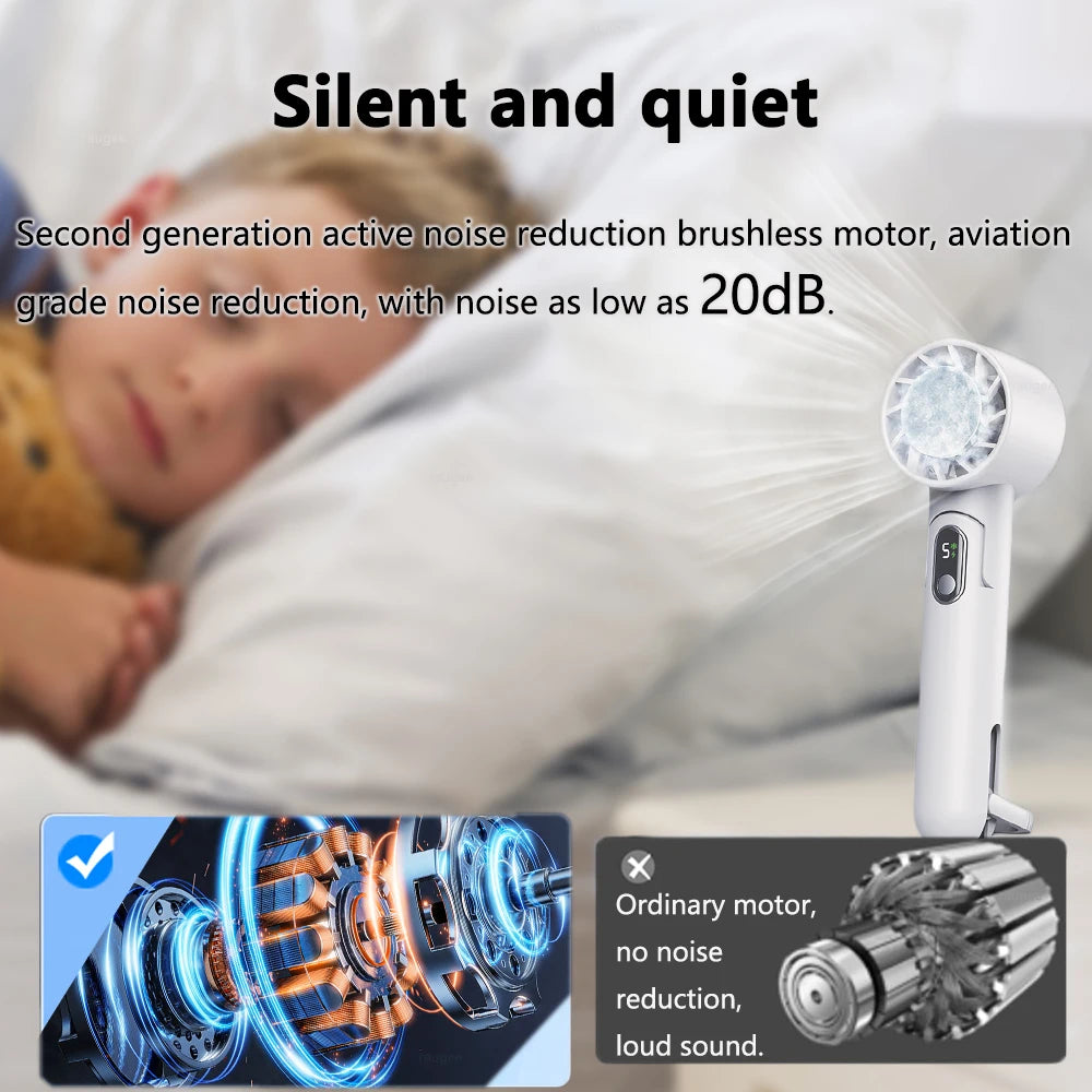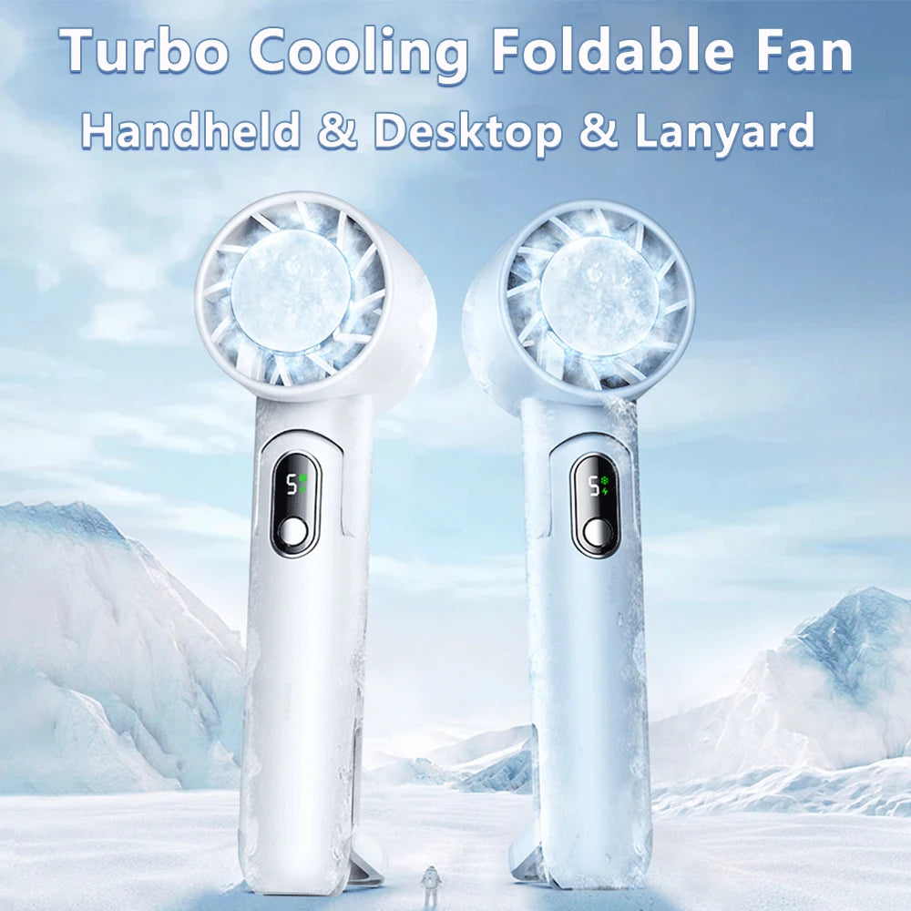 Portable Fan Mini Handheld Fan USB Rechargeable Turbo Fan Foldable Hand held Fan Small Ice Cooling Fan with 4000mAh Power Bank