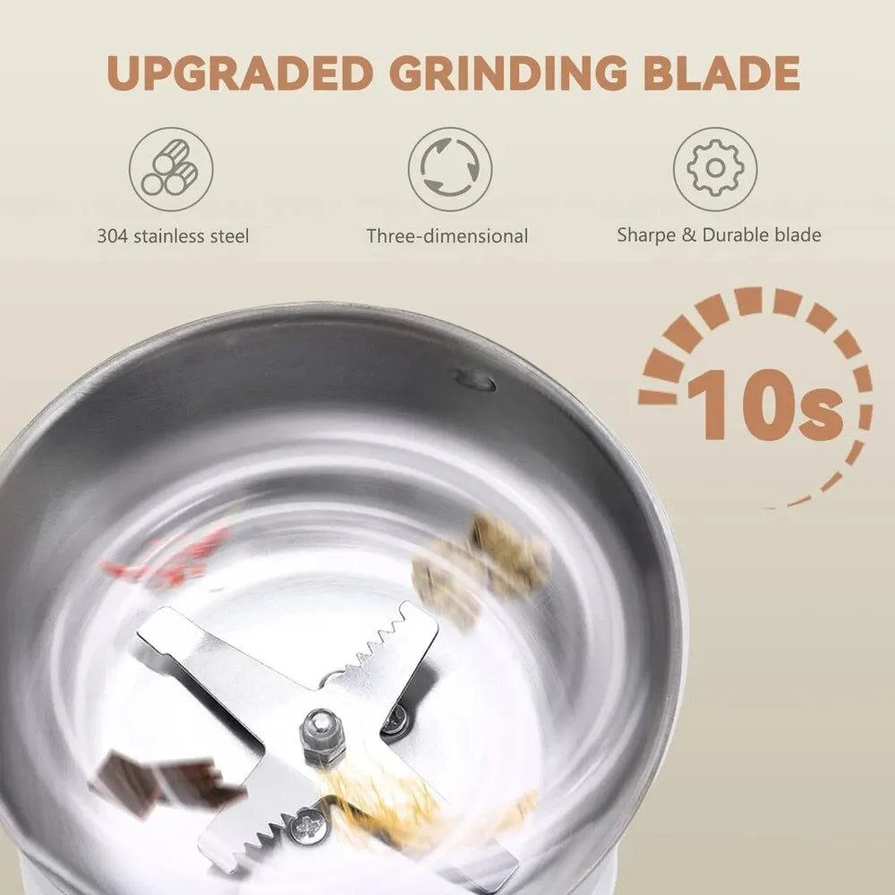 Powerful Home Electric Coffee Bean Grinder Nut Seed Herb Grind Spice Crusher Mill Blender Machine Stainless Steel