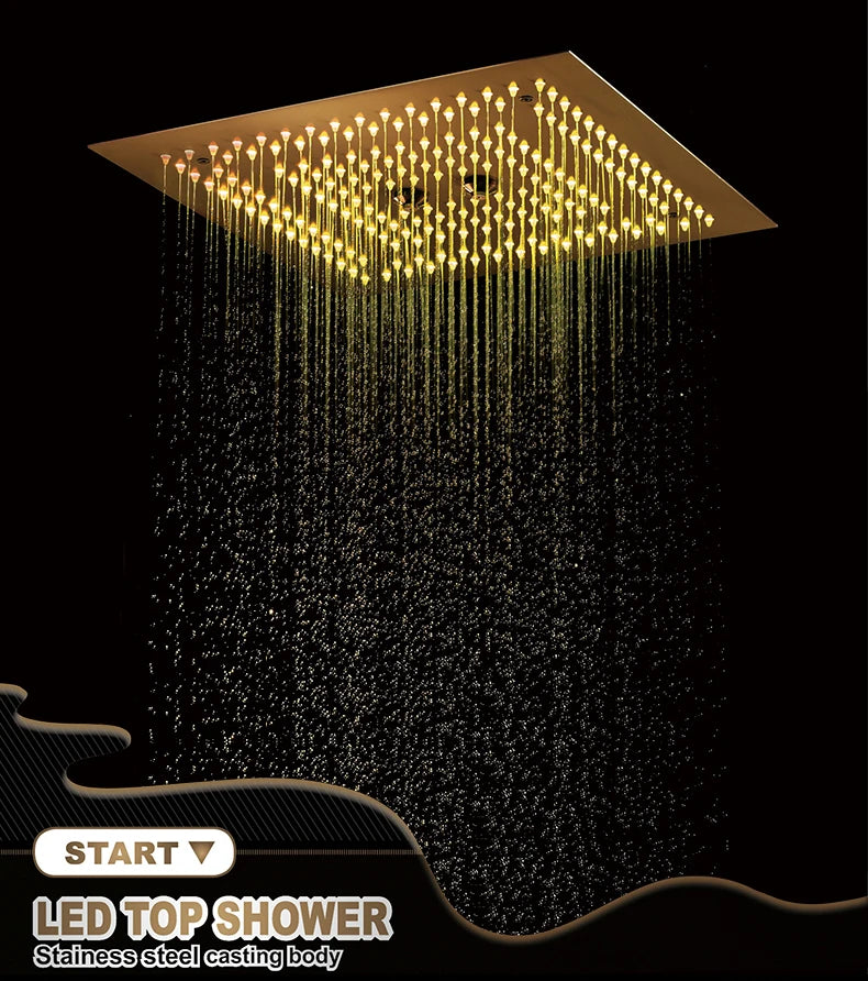 Qlonn 16 Inch Rain Shower Head Large Stainless Steel Bathroom Ceiling Black Showers Panel Luxury High Pressure LED Showerheads
