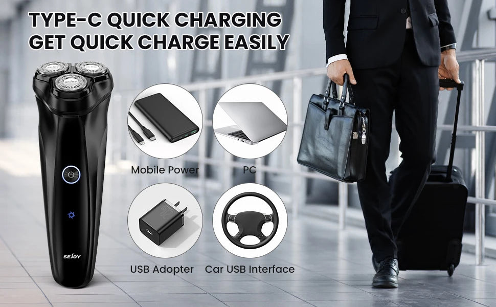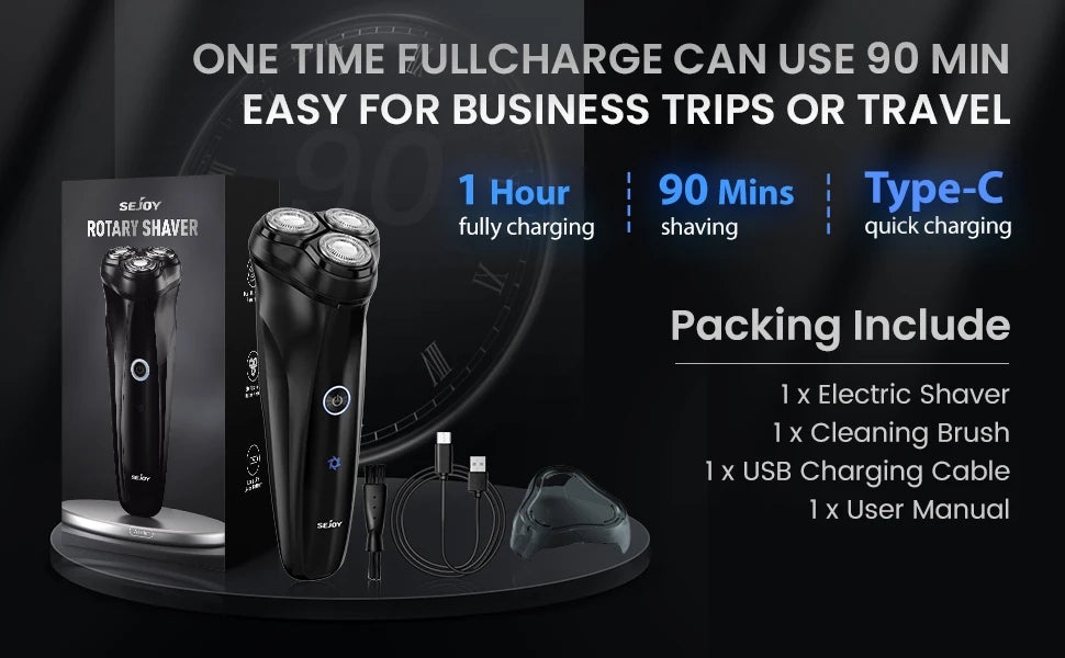 SEJOY Electric Razor for Men 3D Rotary Shaver Dry Wet Shaving Pop-Up Beard Trimmer Rechargeable Hair Cutting Machine