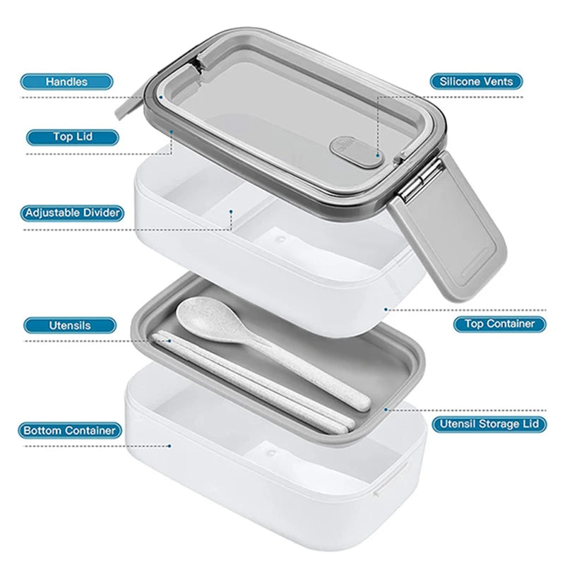 Stackable Bento Lunch Box with Handle Japanese Lunch Box Kit with Spoon & Chopstick Lunch Containers Storage Box for Kids Adult