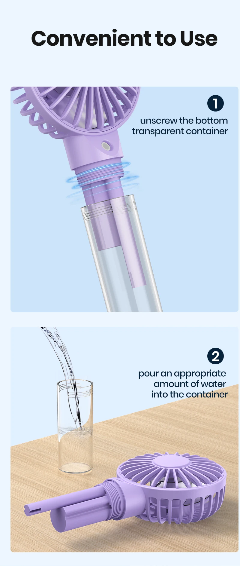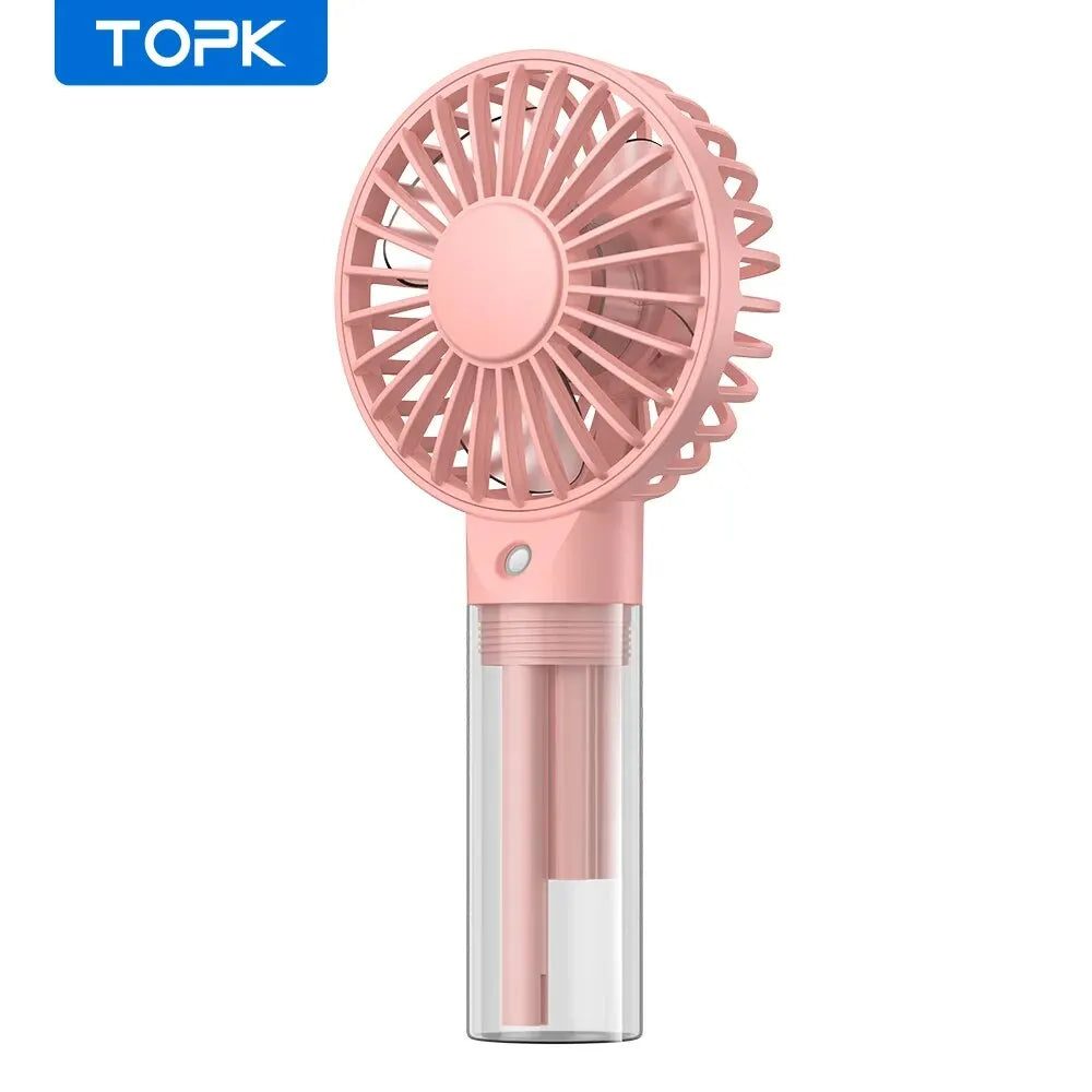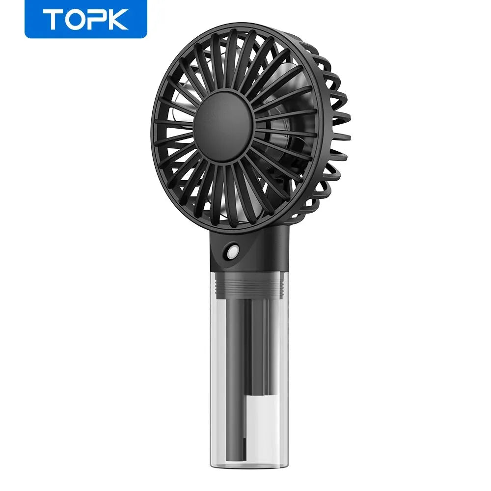 TOPK Mini Portable Fan 2000mAh USB Rechargeable Water Mist Spray Cooling Fan Personal Humidifier Desktop Electric Fan for home