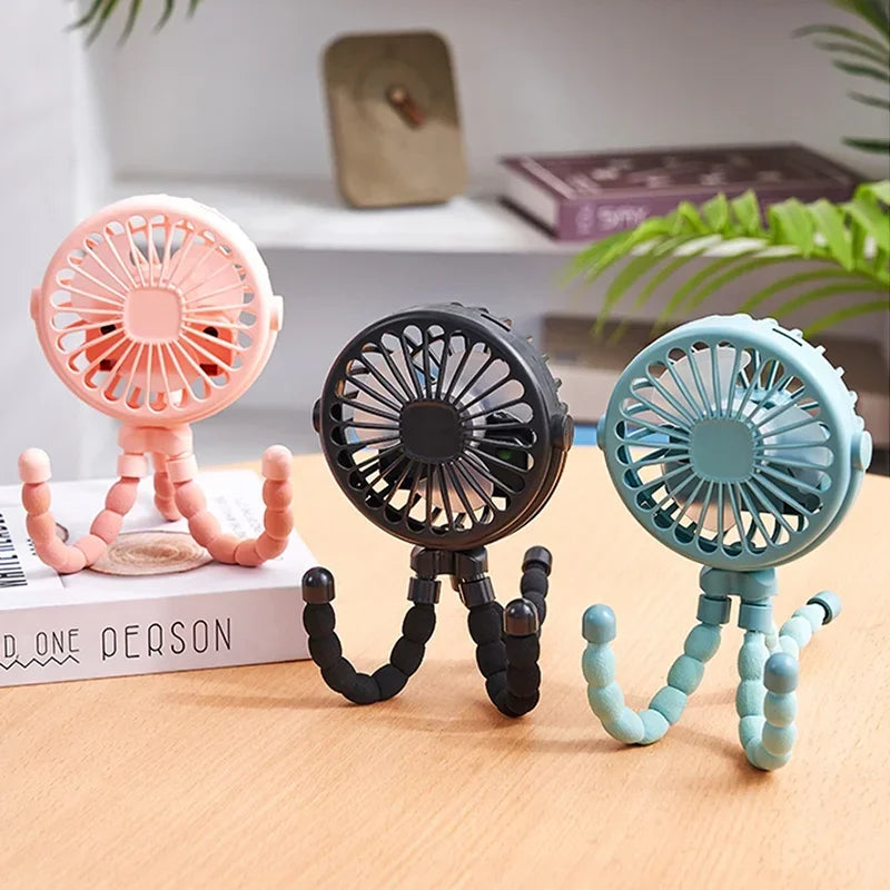 USB Rechargeable Octopus Multifunctional Mini Fan Fixable Small Fan Portable Desktop for Baby Stroller Bicycle with Soft Wind