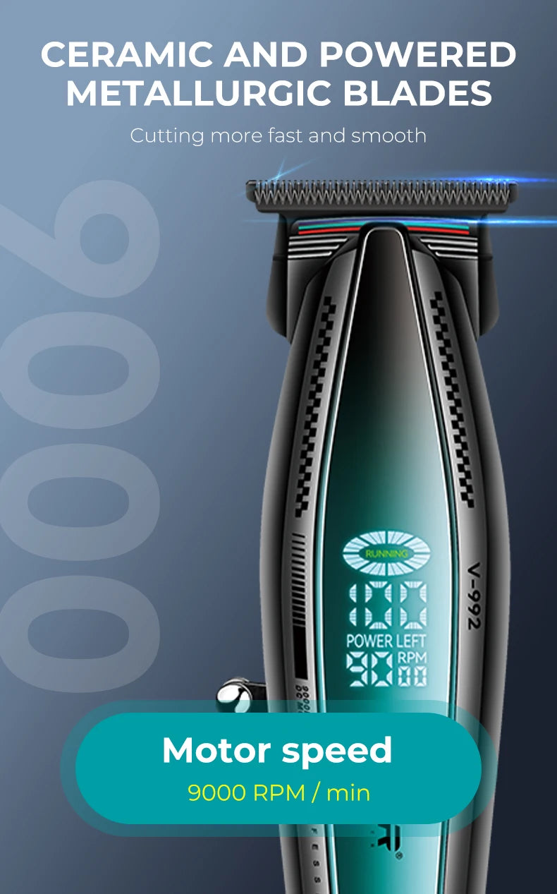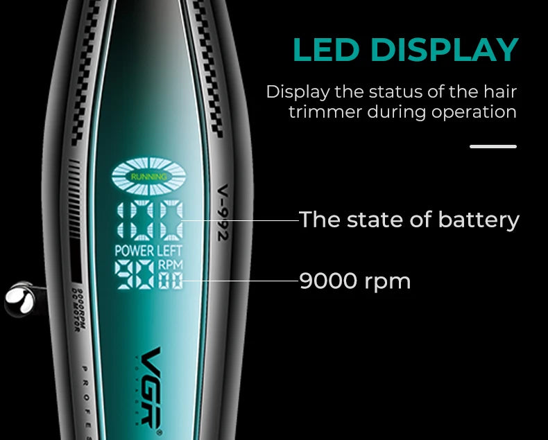 VGR Professional Hair Trimmer Electric Haircut Machine Rechargeable Hair Clipper 9000 RPM LED Display Hair Trimmer for Men V-992