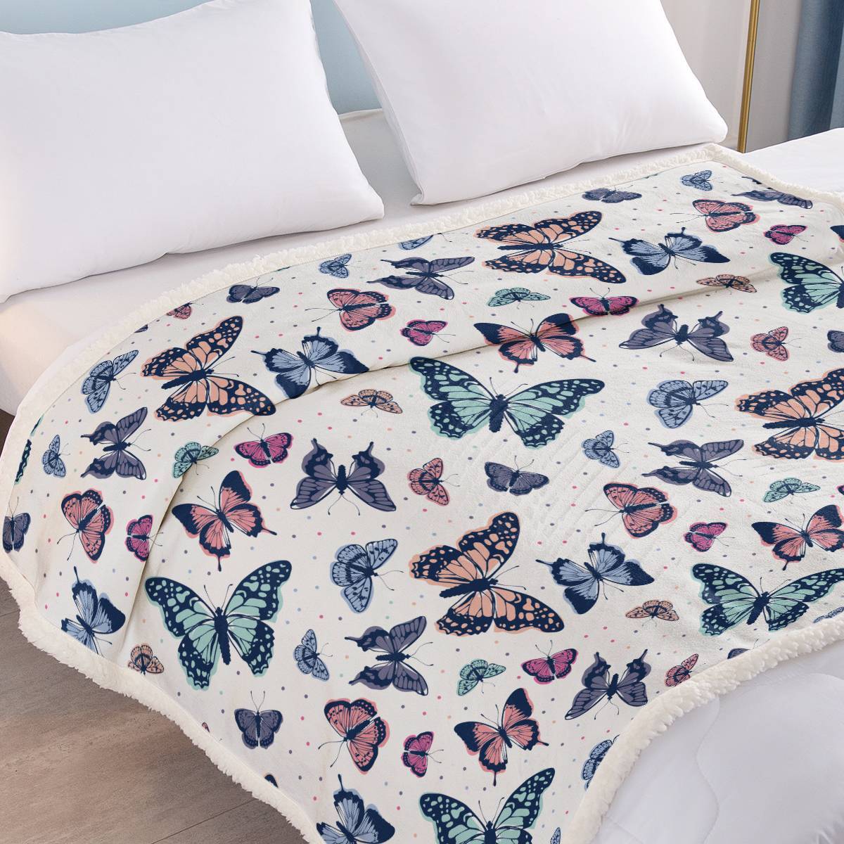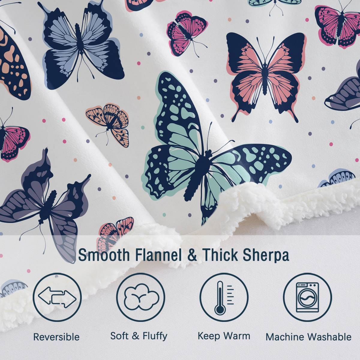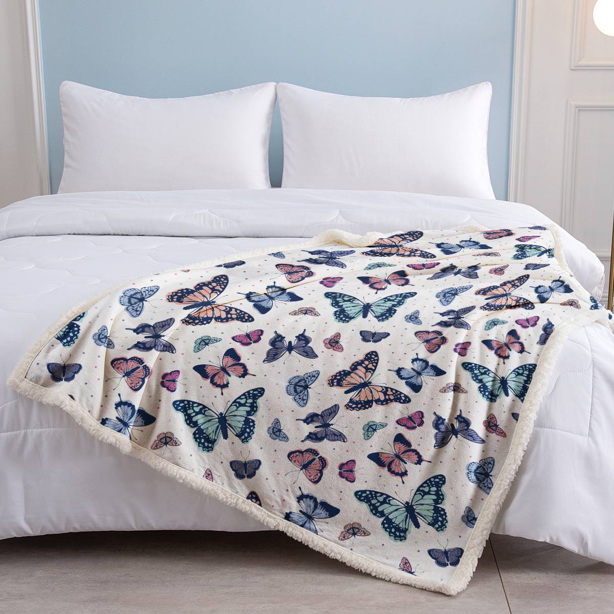 Garden Purple Butterfly Sherpa Throw Blanket Soft Blankets And Throws Plush