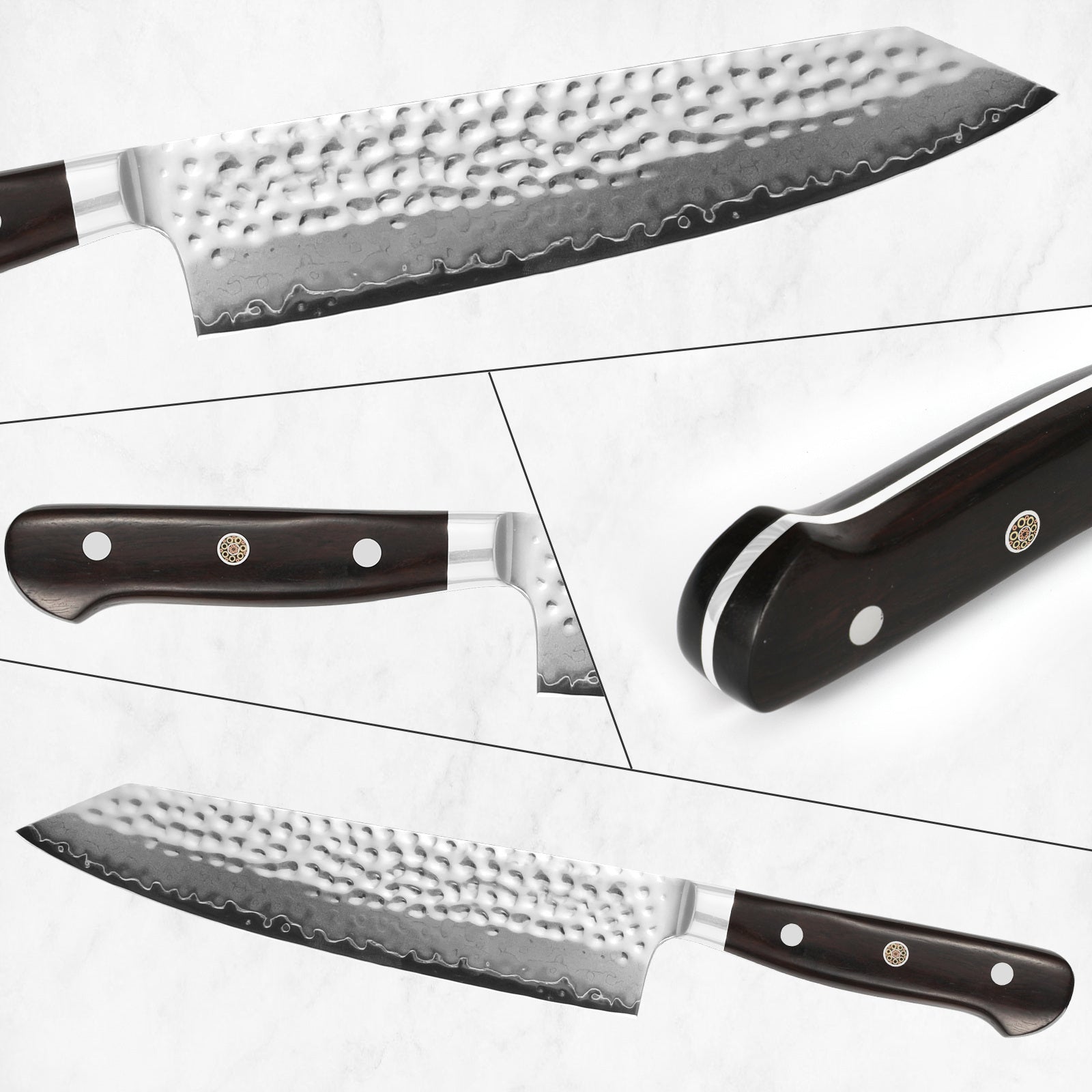 8.5 Inch Kiritsuke Knife, Professional VG10 Damascus Steel Chef Knife With Hammered Blade, Ultra Sharp Kitchen Slicing Knife With Ebony Wood Handle & Gift Box