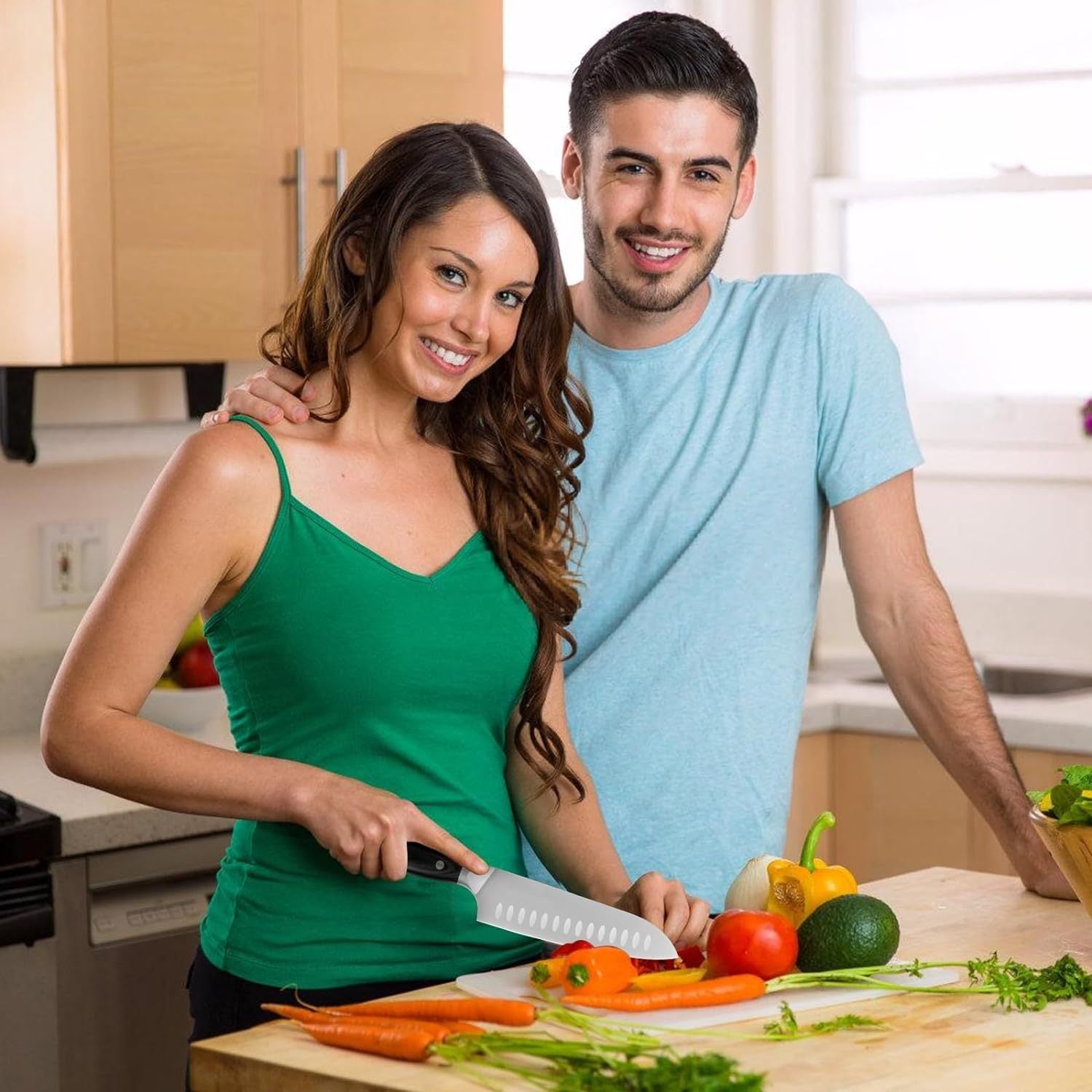 Professional Chef Knife 8 Inch, Santoku Knife 7 Inch High Carbon Steel Chef Knife Japanese Knife, Full Tang Wood Handle Kitchen Knife