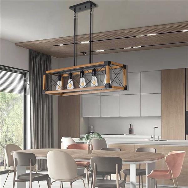 5-light Retro Farmhouse Pendant Light Suitable For Kitchen, Living Room, Dining Room Walnut Wood ,without Light Bulb,Prohibited Platform
