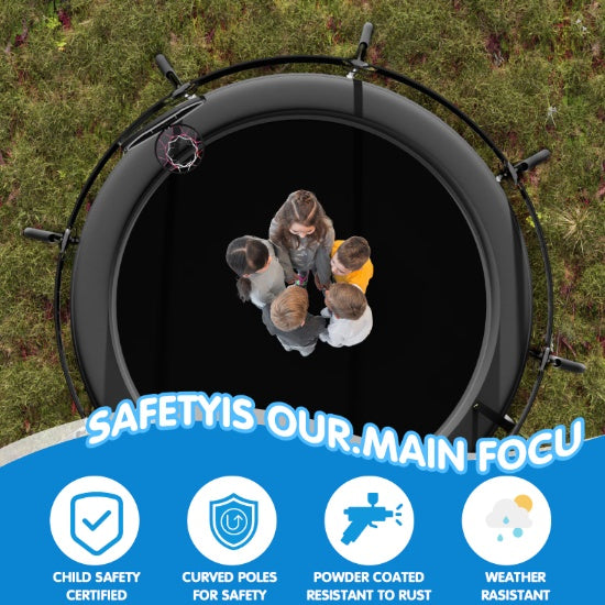 12 FT TRAMPOLINE BLACK PUMPKIN-STYLE SAFETY NET WITH BASKETBALL HOOP