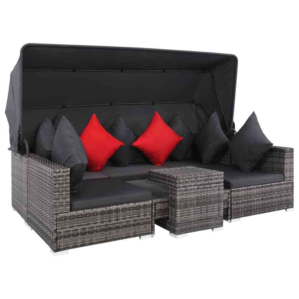 vidaXL 7 Piece Patio Lounge Set with Cushions Poly Rattan Gray