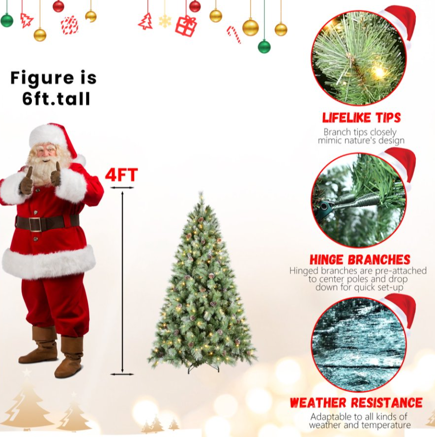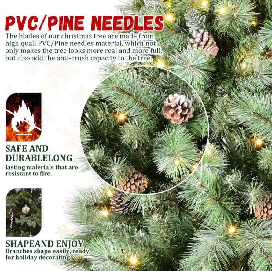 7.5ft PVC Hard Needle Mixed Tree Pine Cone 51pcs