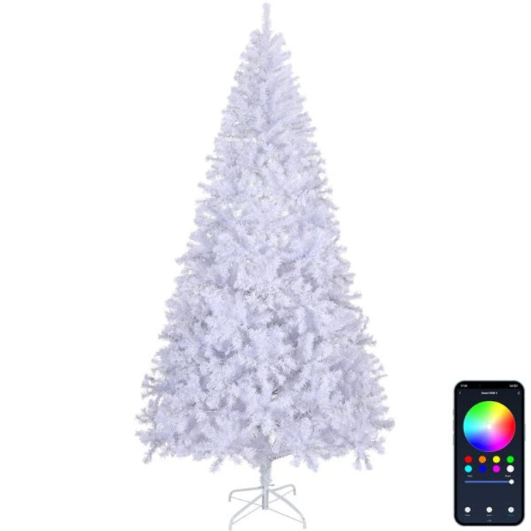 8 FT Pre-lit Artificial Christmas Tree, APP Controlled Xmas Tree Hinged Branches With 500 RGB Lights And 1500 Branch Tips, For Holiday Party Store Office Home, White