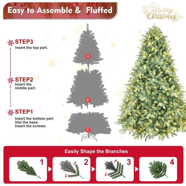 Artificial 7ft Blue Green Tint Christmas Tree With 2518 PE PVC Mixed Branch Tips, 700L Warm White Led, Memory Wire Iron Wire, Hinged Premium & Foldable Base For Indoor Holiday Decorating