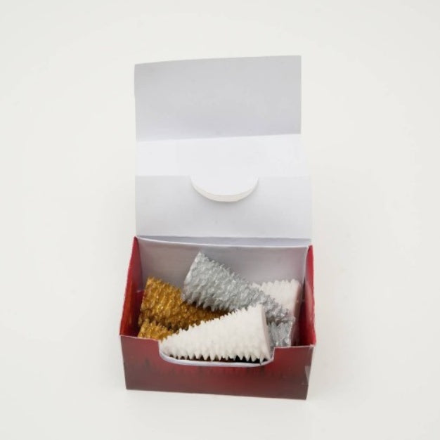 • Set of 6 Christmas Tree Candles: Includes six elegant candles shaped like Christmas trees, perfect for adding a festive touch to your décor.