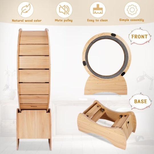 • Built to Last and Secure: This cat exercise wheel is made from solid multi-layer wood (birch and poplar) with a 0.5"/12 mm thickness and an ultra-narrow 0.2" gap to prevent paw injuries. The widened base and running track deliver added stability. It offers many health advantages to cats, such as mitigating obesity risks and enhancing joint flexibility, ensuring their contentment.