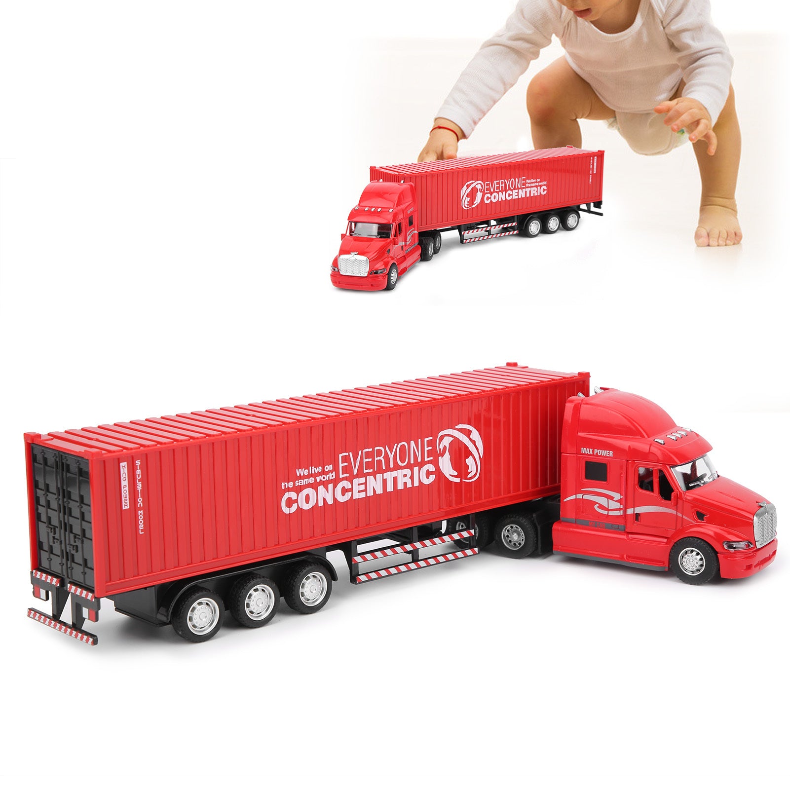 Alloy Simulation Container Car Model Children Kid Pull Back Car Toy with Sound Light(Red )