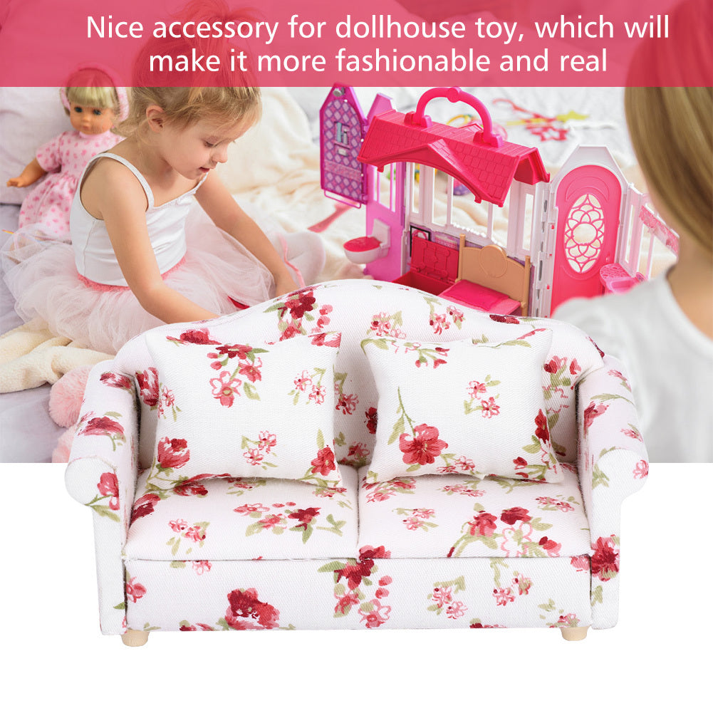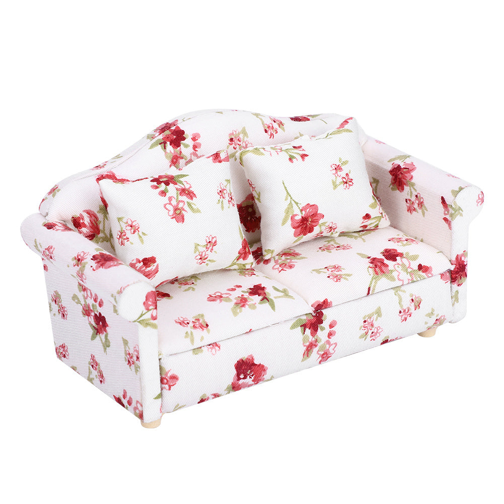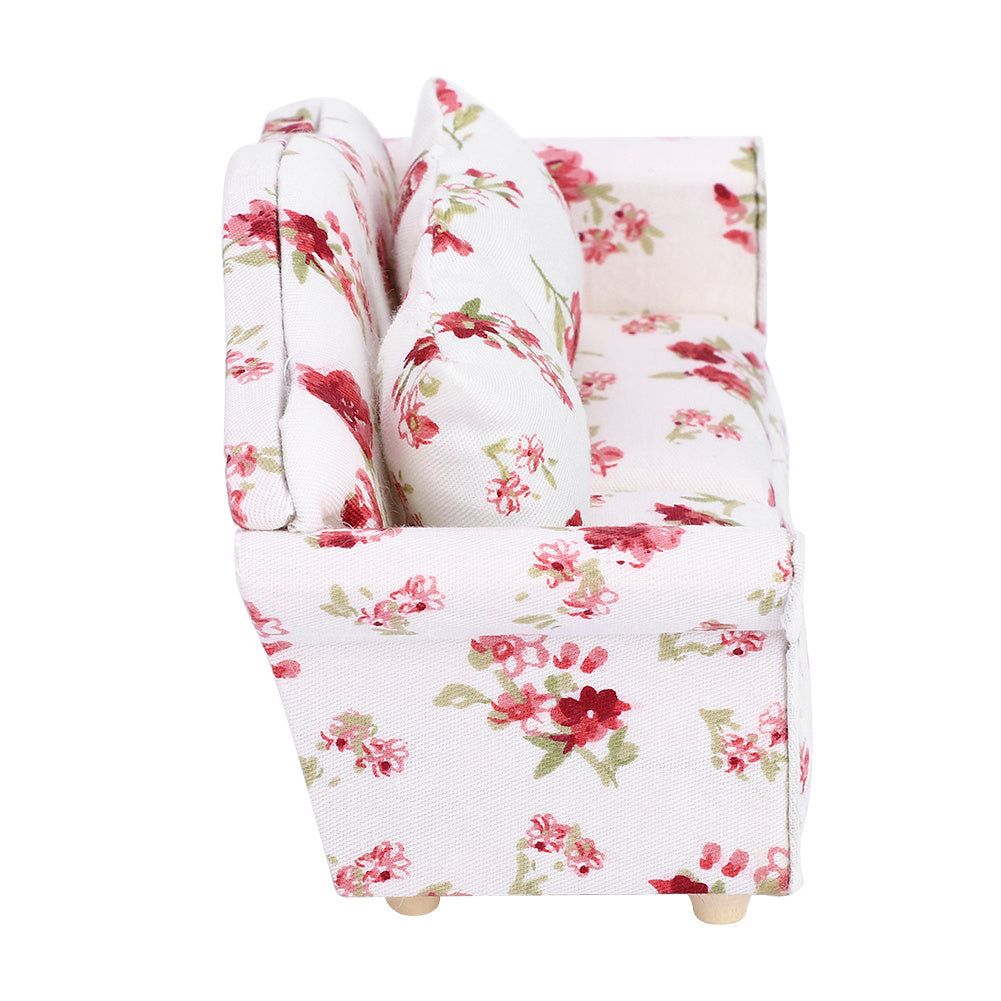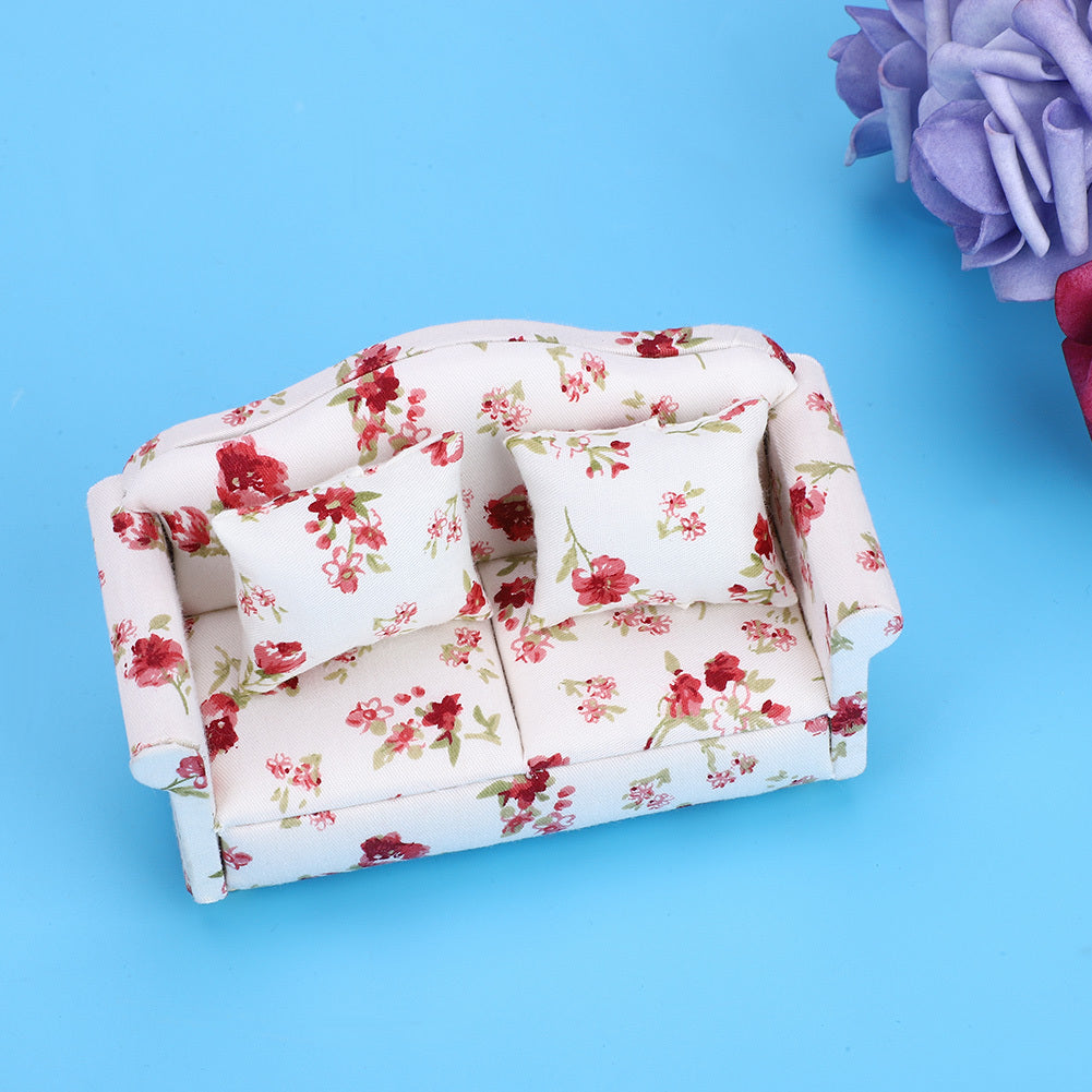 Dollhouse Accessories Flower Pattern Mini Furniture Double Sofa for 1/12 Scale Doll (#1)