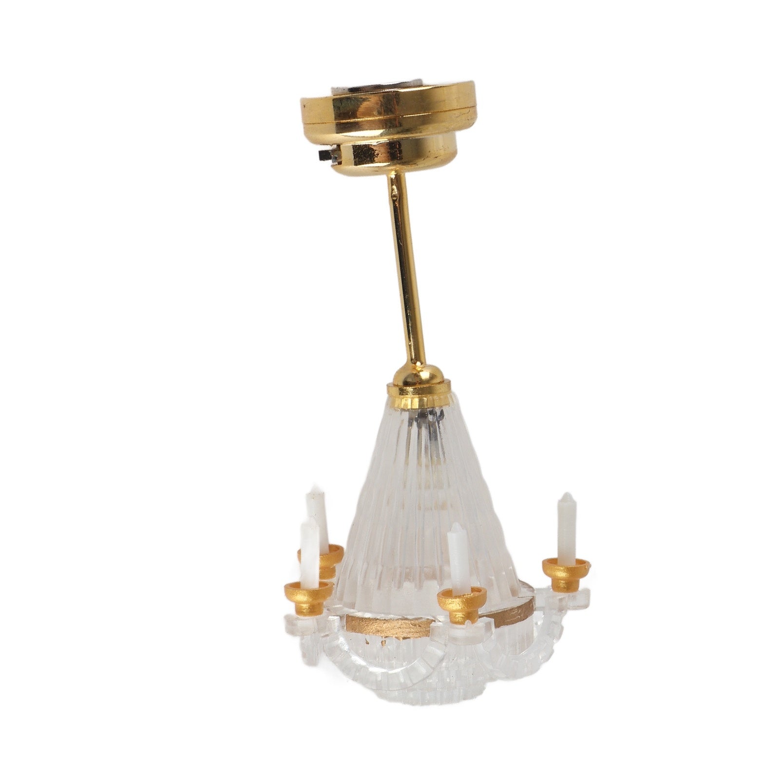 Miniature Chandelier 1/12 Scaled Vivid Decorative Mini Ceiling Lamp with 5 LED Candle for Dollhouse