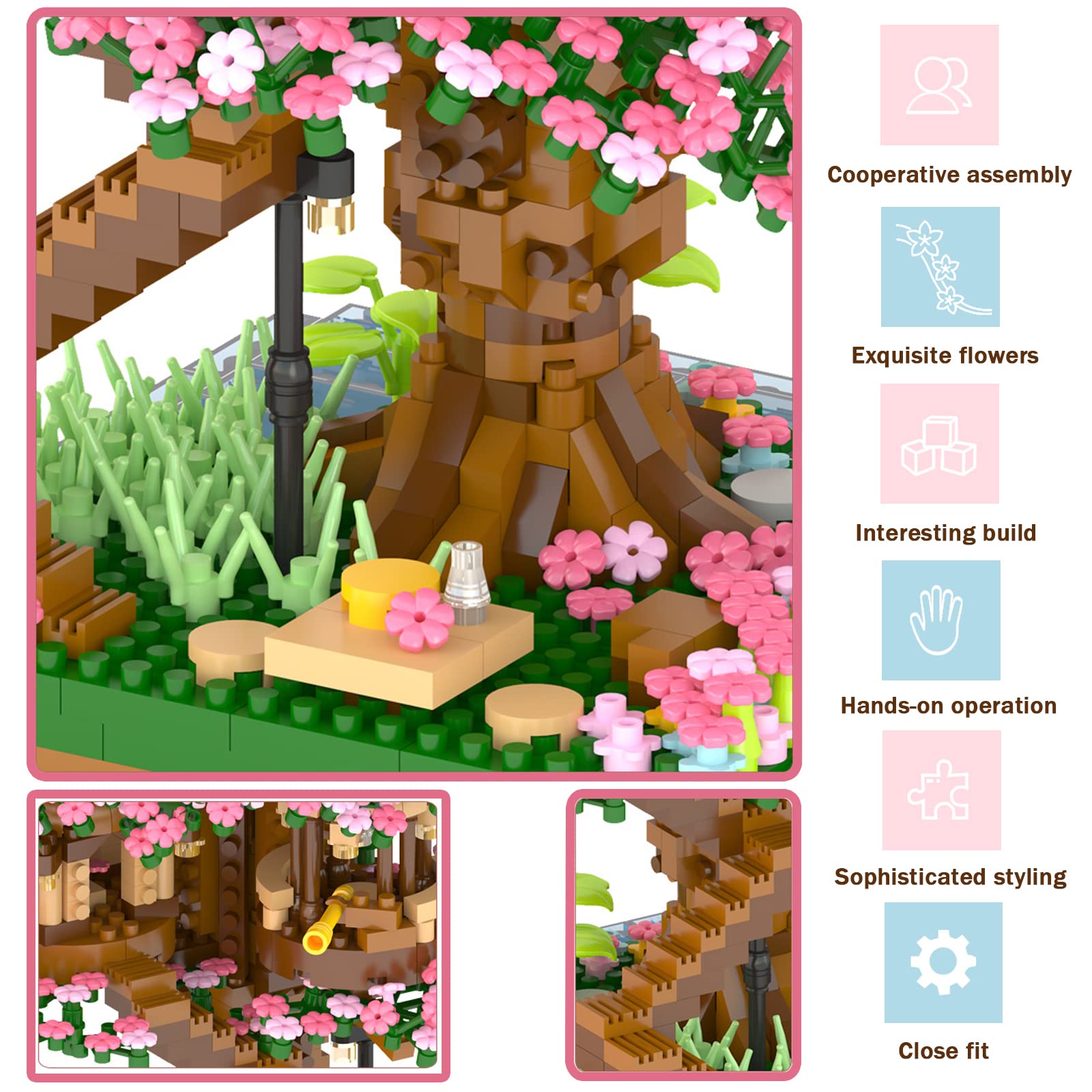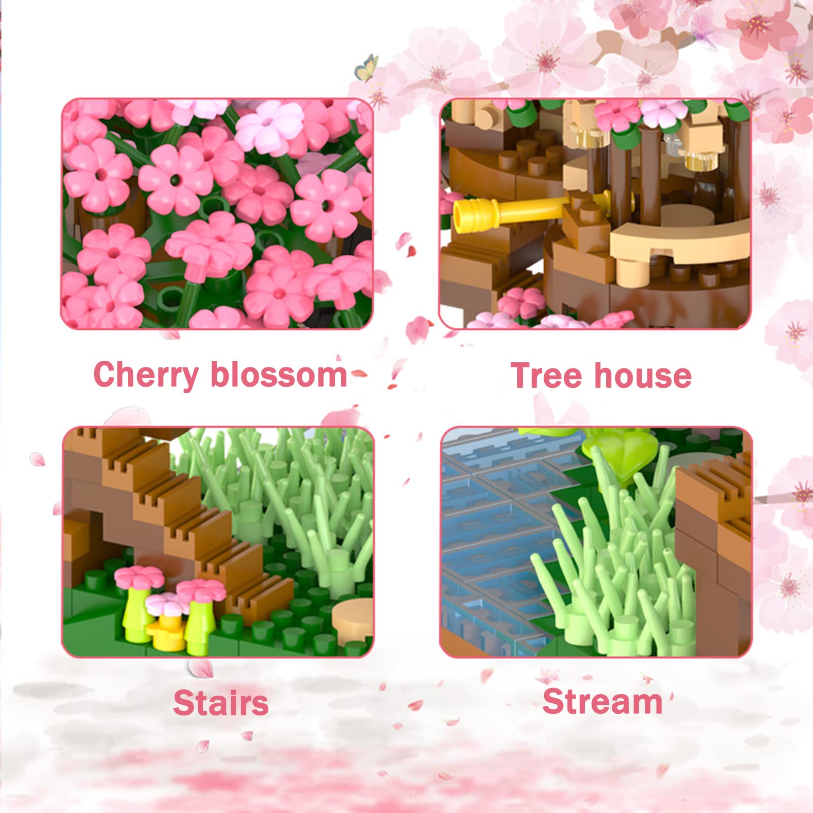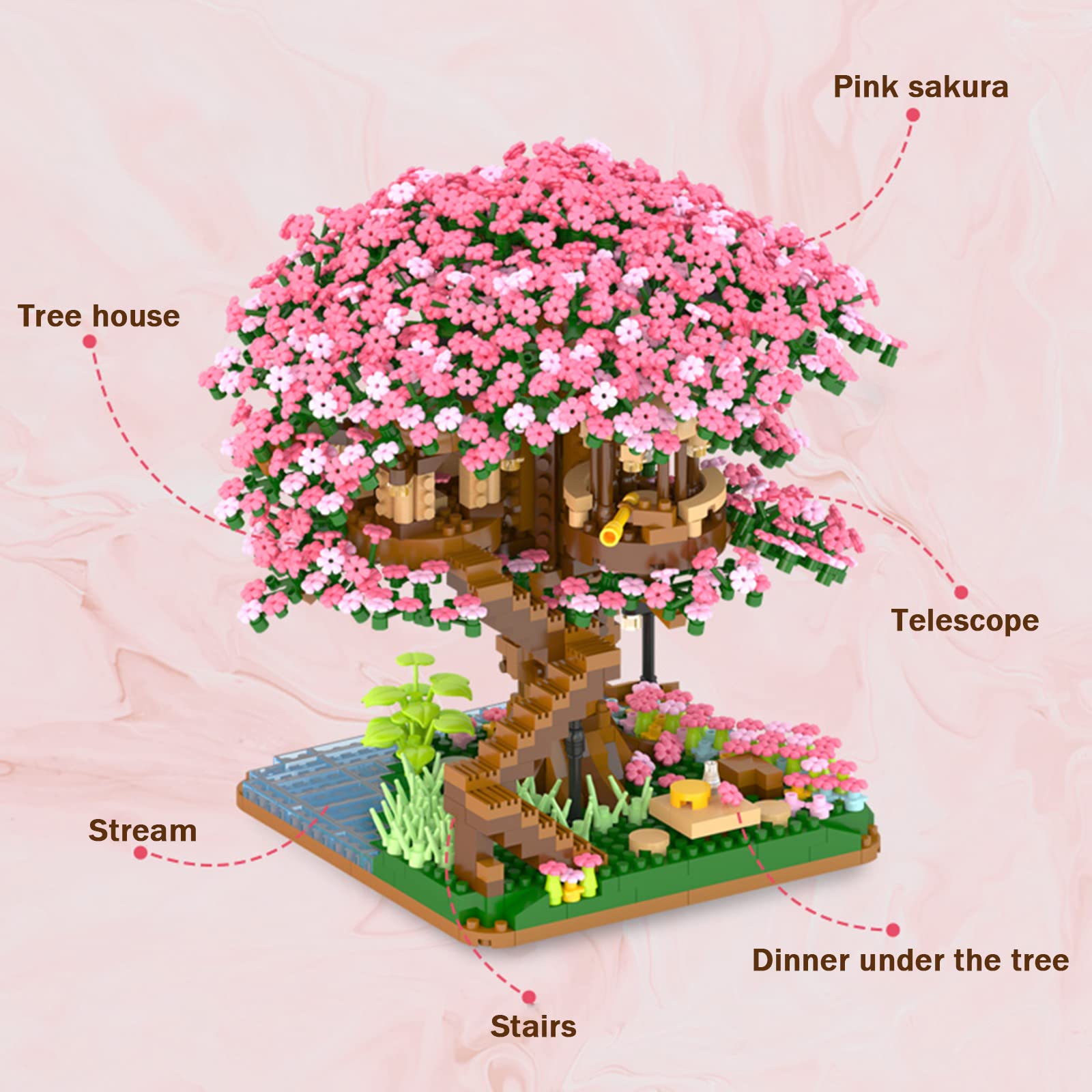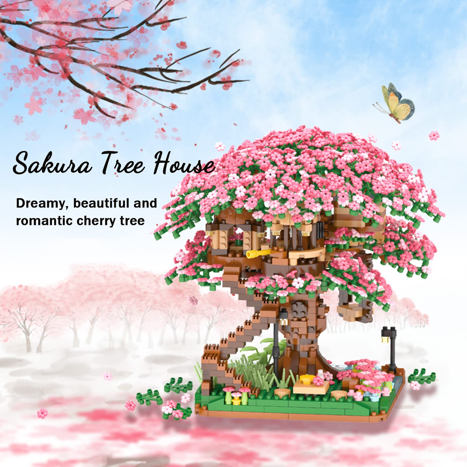Children's Toys Mini Sakura Tree House Building Blocks City Street View Sakura Model Building Blocks DIY Toys