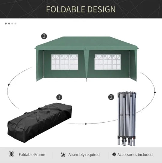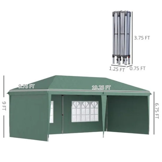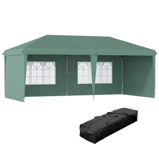 10' X 20' Pop Up Canopy Party Tent With 4 Sidewalls , Green -AS