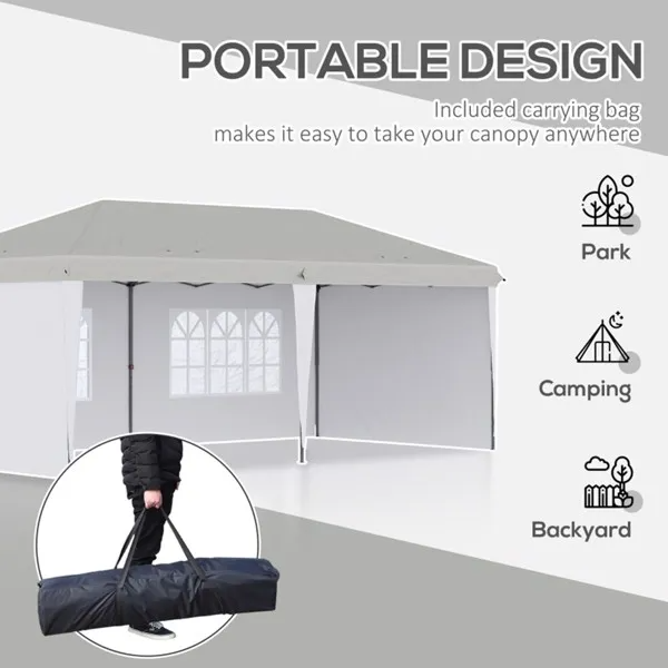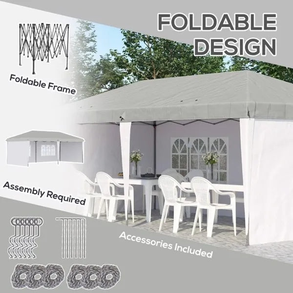 10' X 20' Pop Up Canopy Party Tent With 4 Sidewalls , White-AS