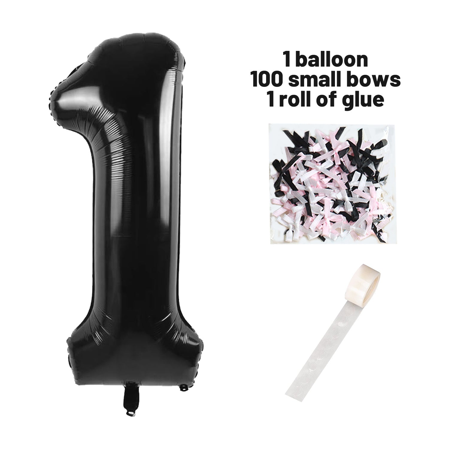 40 Inch Black Number Balloons With Ribbon Bow 1 Roll Glue Point