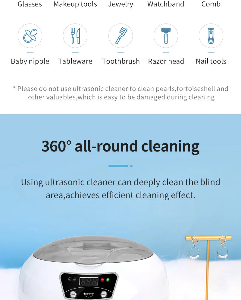 600ml Ultrasonic Cleaner Bath Timer for Jewelry Parts Glasses Manicure Stones Cutters Dental Razor Brush Ultrasound Sonic Boxc