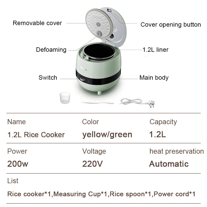 Electric 1.2L Rice Cooker Mini 1-2 person single person household small multi-function Cooking Electric Smart Rice Cooker
