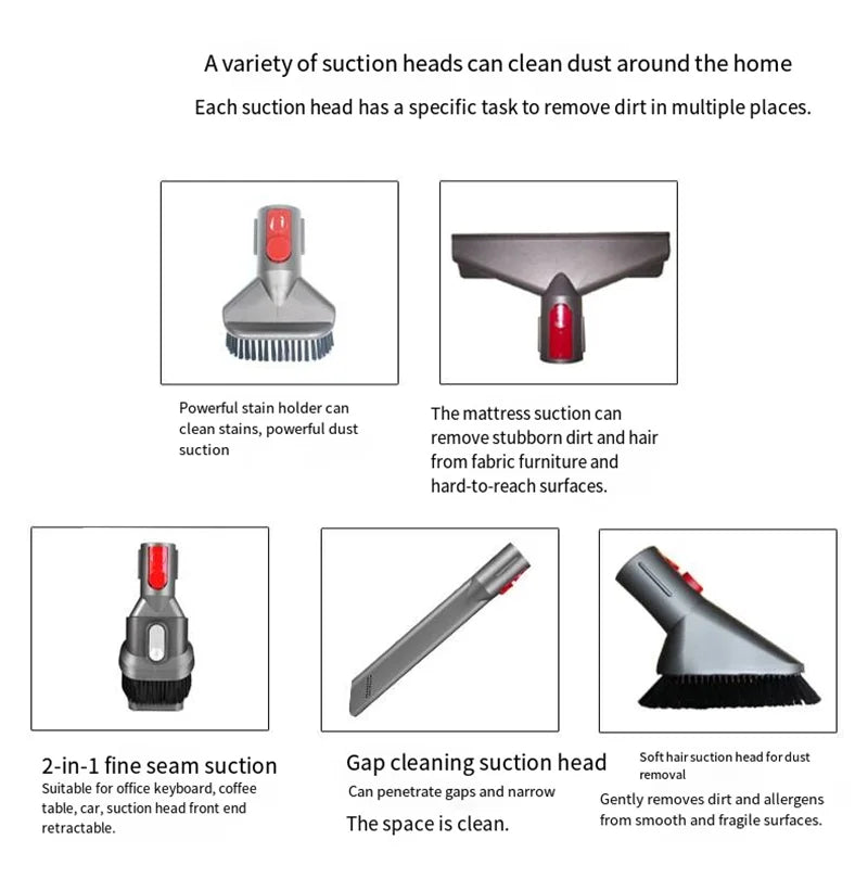 Flat Suction Nozzle Head For Dyson V7 V8 V10 V11 V12 V15 Vacuum Cleaner Mattress Brush Head Round Brush Soft Brush Parts