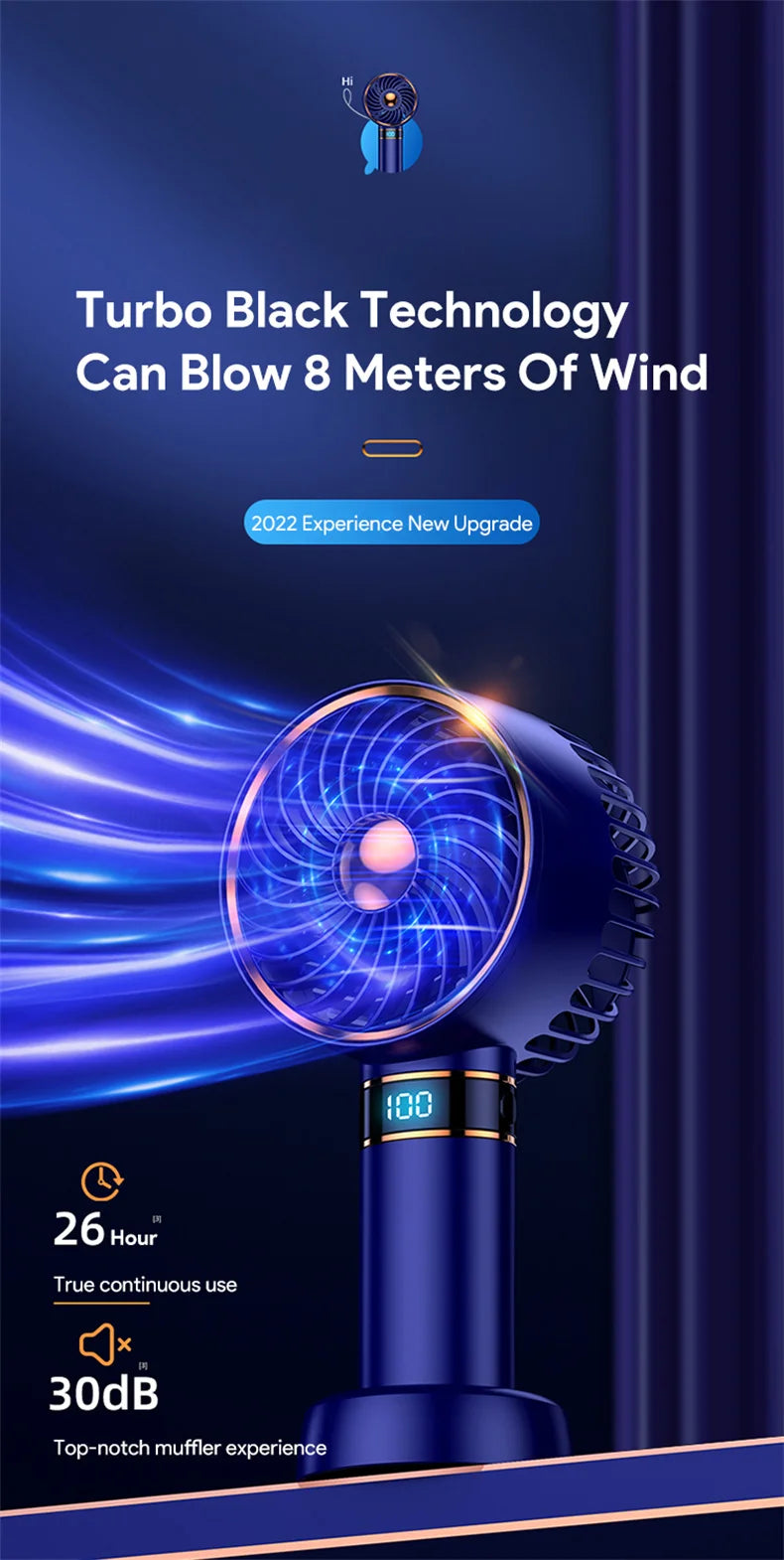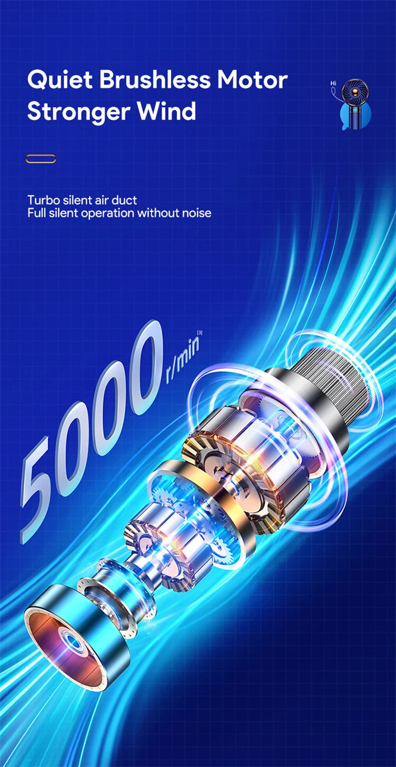 Hand Fan 2024 New Handheld Mini Fan USB 5000mAh Rechargeable Mini Portable Small Pocket Fan Data Display
