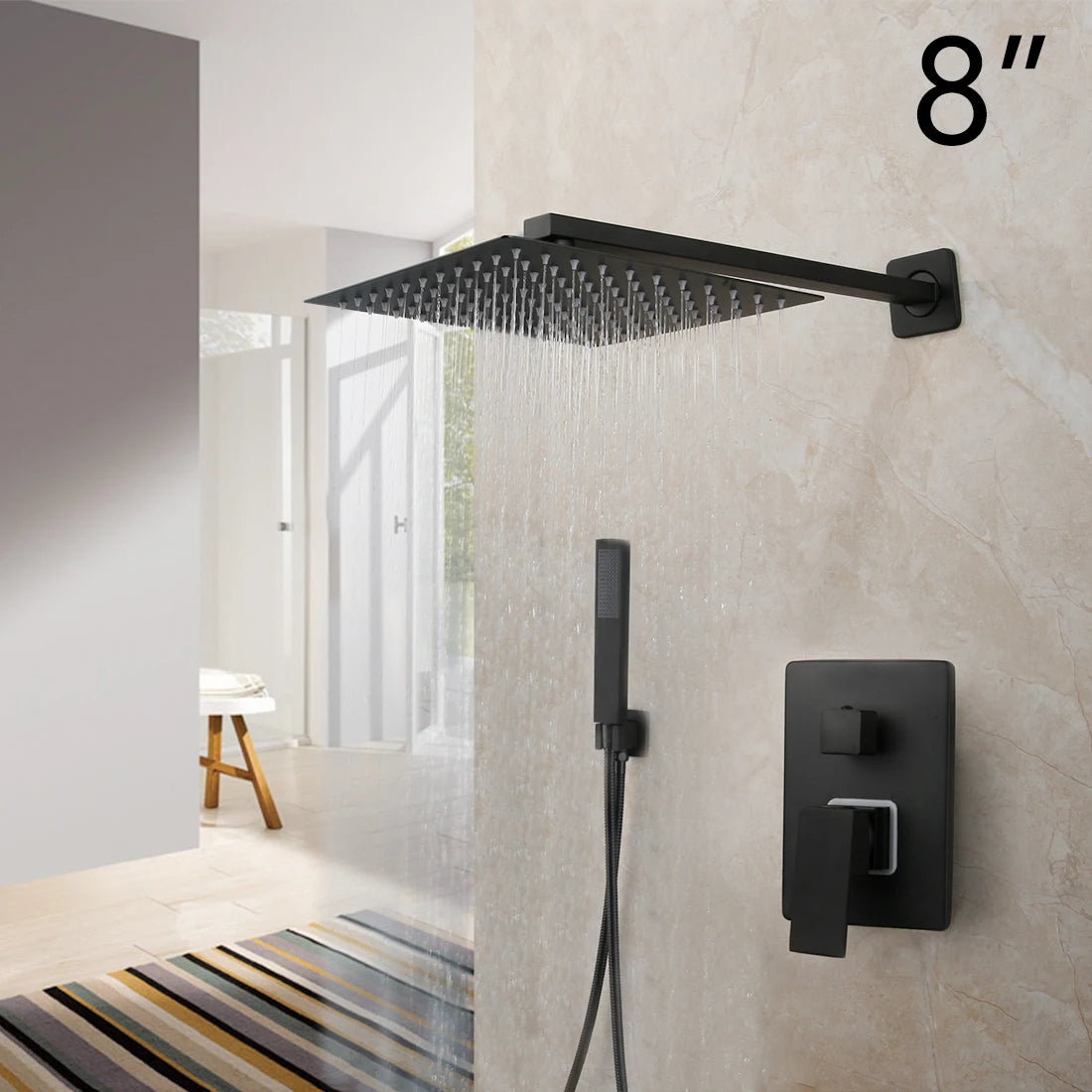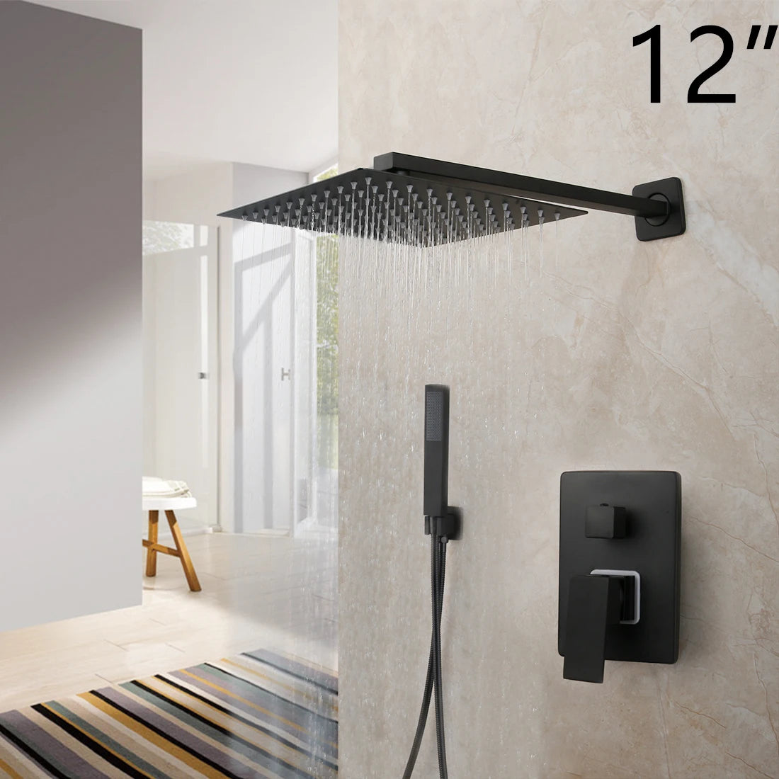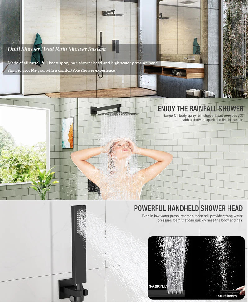 High-pressure water flow: Our showerhead set features a stainless steel 12" overhead shower and handheld showerhead that provide a high-pressure water flow for a refreshing and invigorating shower experience.