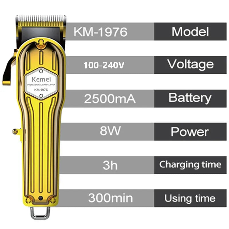 Kemei 1976 Full Metal Case Hair Clipper Professional Barber Electric Hair Clipper Men's Professional Rope Cordless Hair Clipper