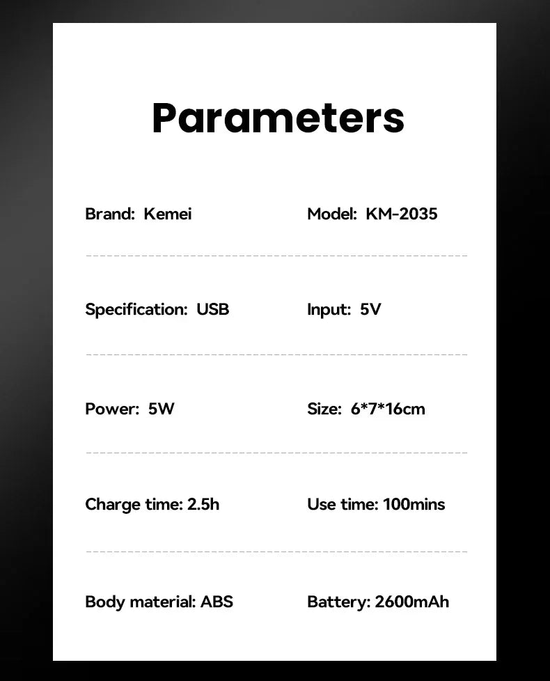Kemei Original Hair Clipper Kit Professional Electric Hair Trimmer Barber Rechargeable Shaver for Men KM-2035 KM-2281 KM-TX7