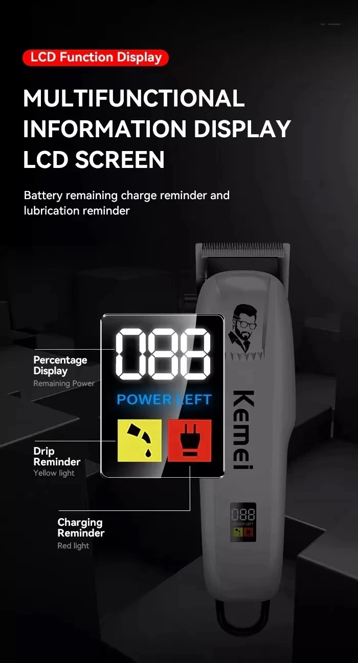 Kemei Professional Hair Clipper Rechargeable Hair Trimmer For Men Shaver Hair Cutting Machine Barber Accessories Cut Machin