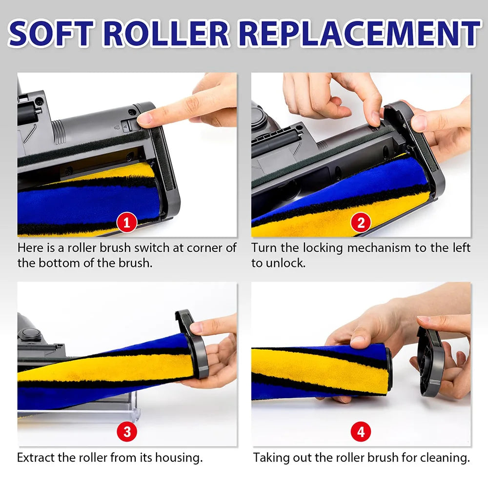Laser Brush For Dyson V12 Detect Slim V10Slim Accessories Soft Roller Brush Head Motorhead With Green Dust Light Replacement