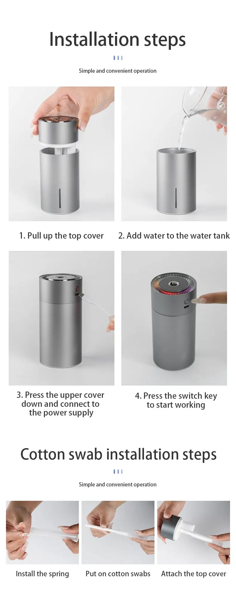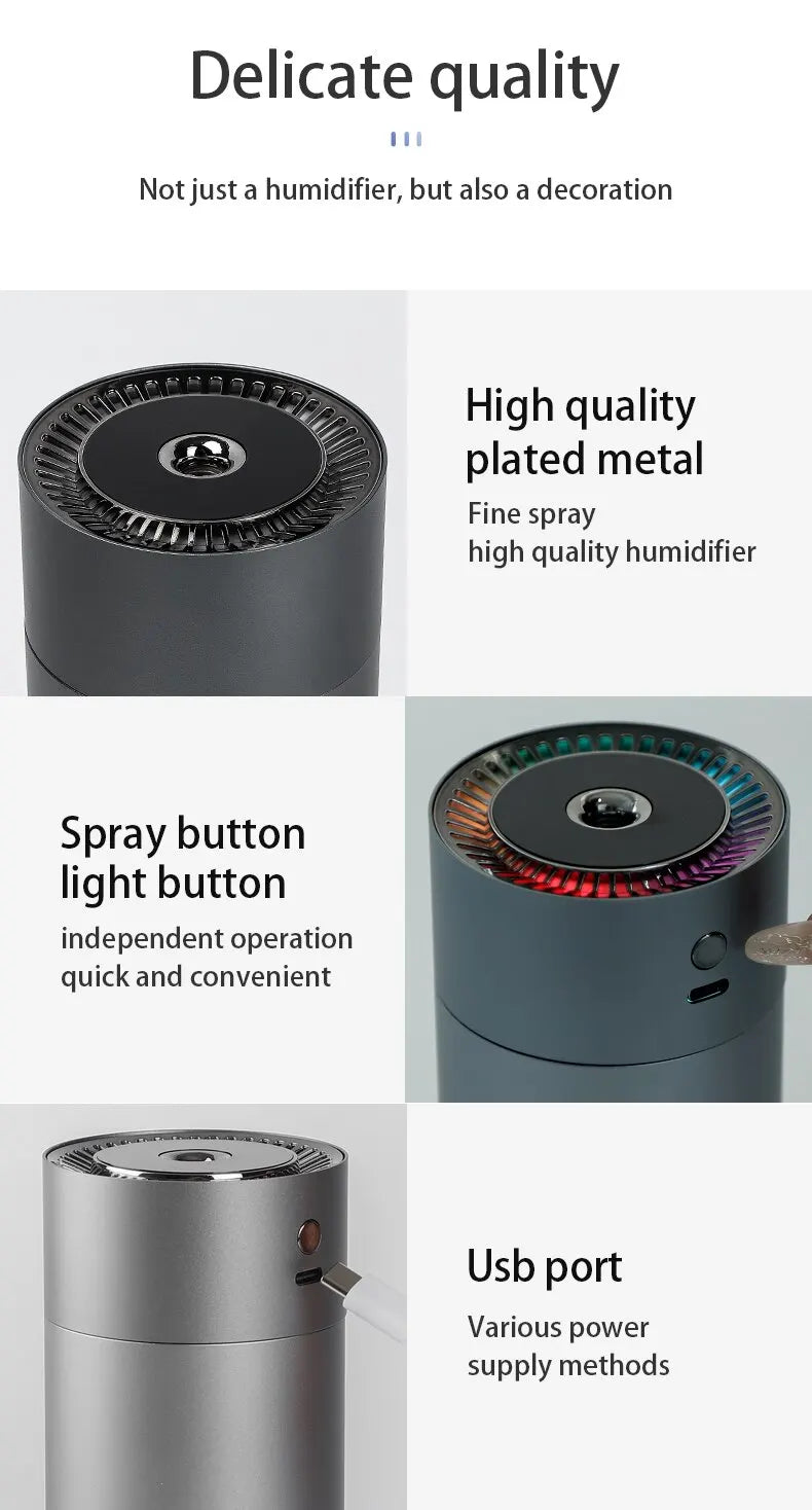 LED Light Aromatherapy Machine Humidifier Diffuser for Car Small Air Humidification Home and Bedroom Big Spray 260ml
