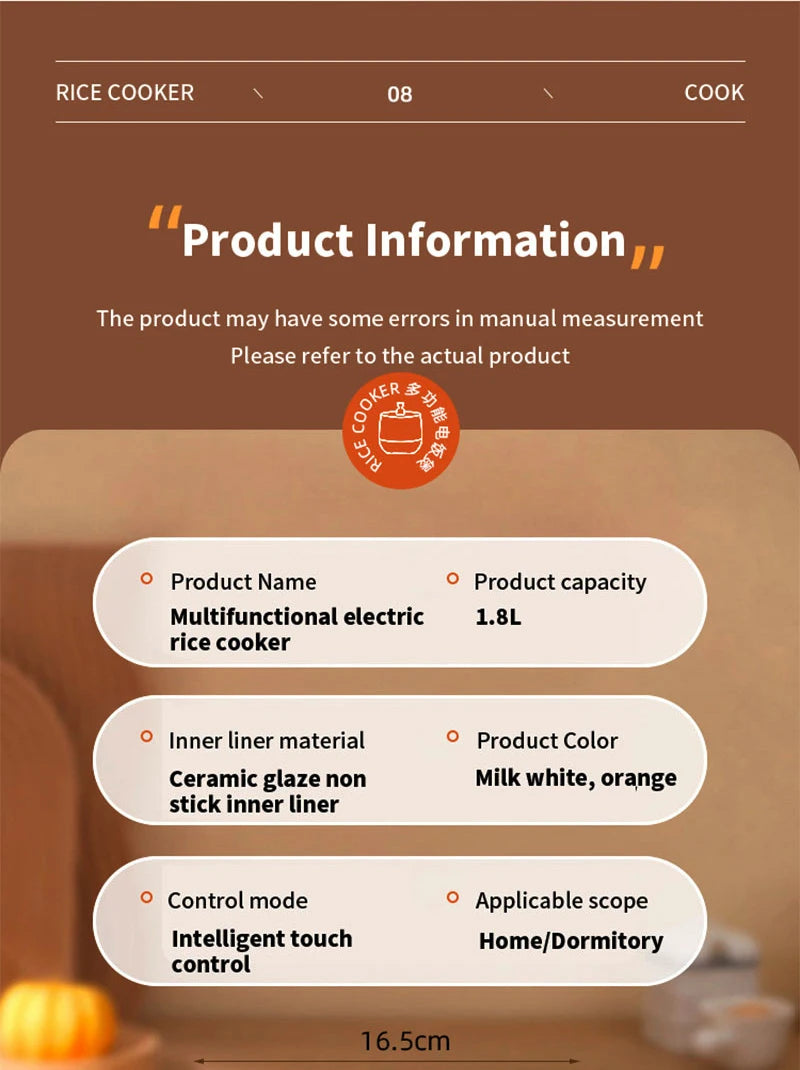 5. Multi functional electric rice cooker: it can cook rice, congee, stir fry vegetables, Fried Rice, soup, hot pot, etc.