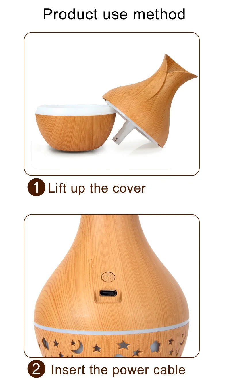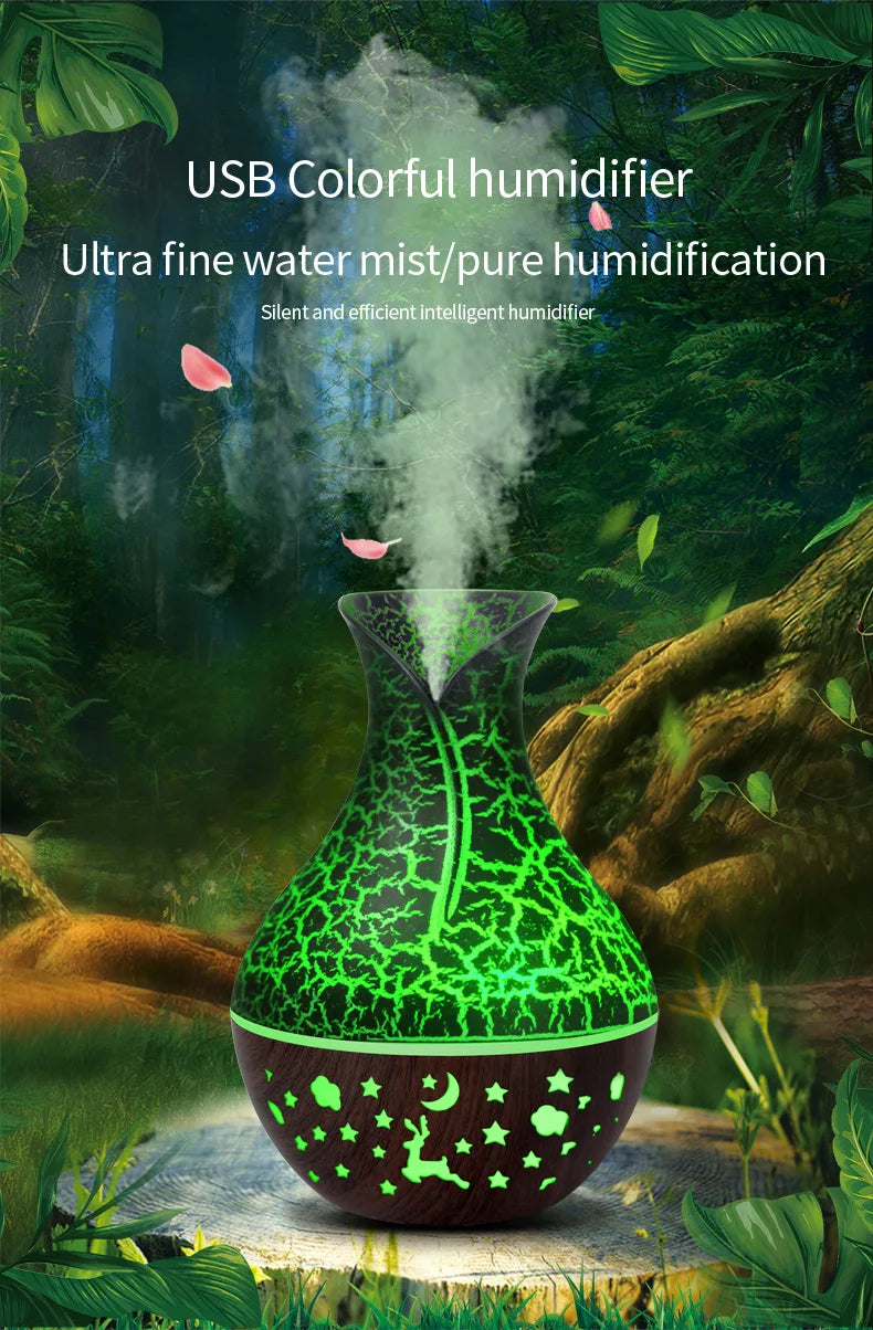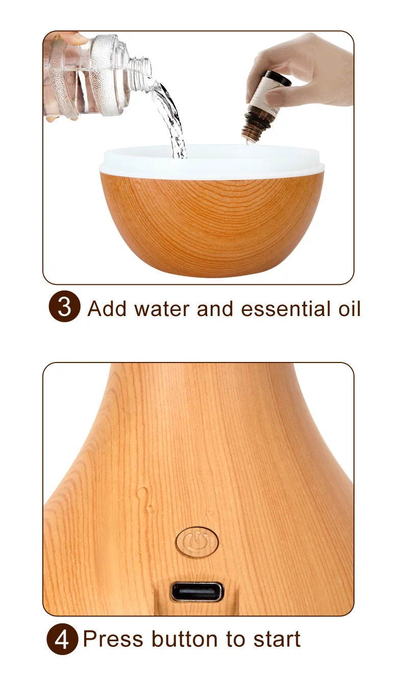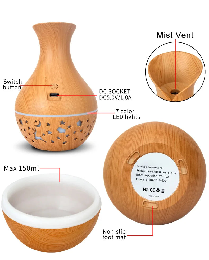 Mini USB Humidifier Wood Grain Aroma Diffuser 7 LED Color Humidifier 150ml Capacity Ultrasonic Air Humidifier Cool Mist for Home