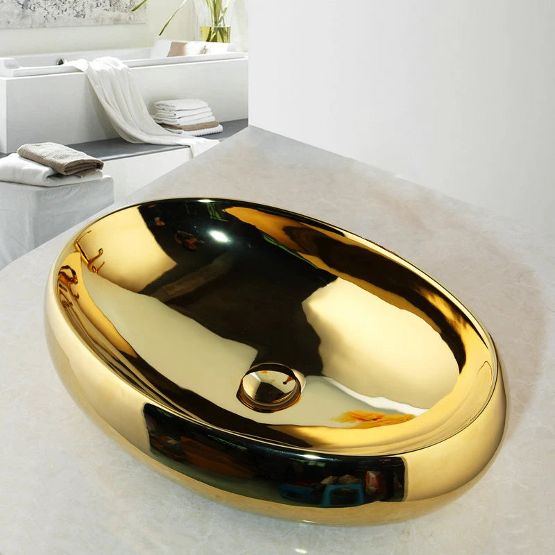 Monite Luxury Golden Ceramic Lavatory Sink Set Solid Brass Bathroom Tap Washbasin Basin Sink Set Bath Combine Mixer Faucet