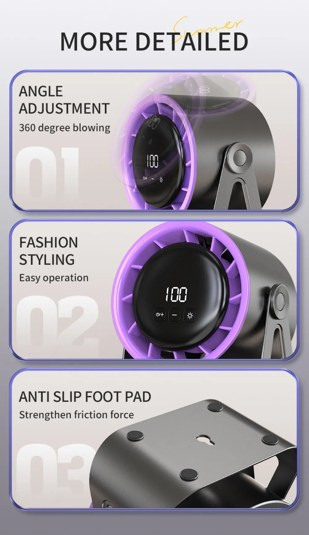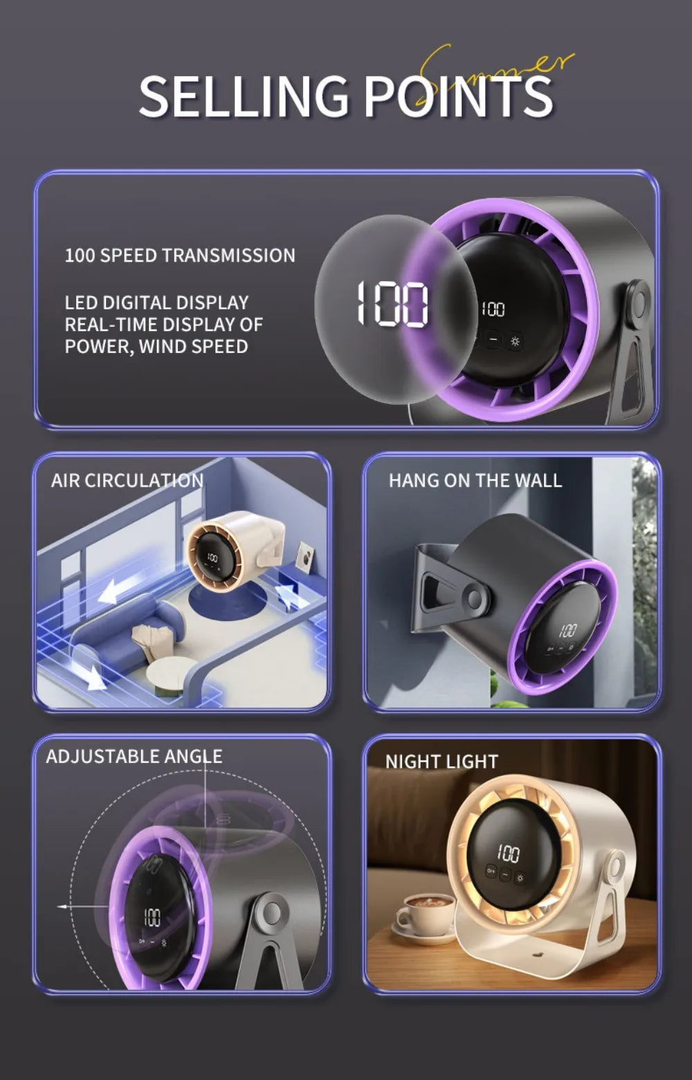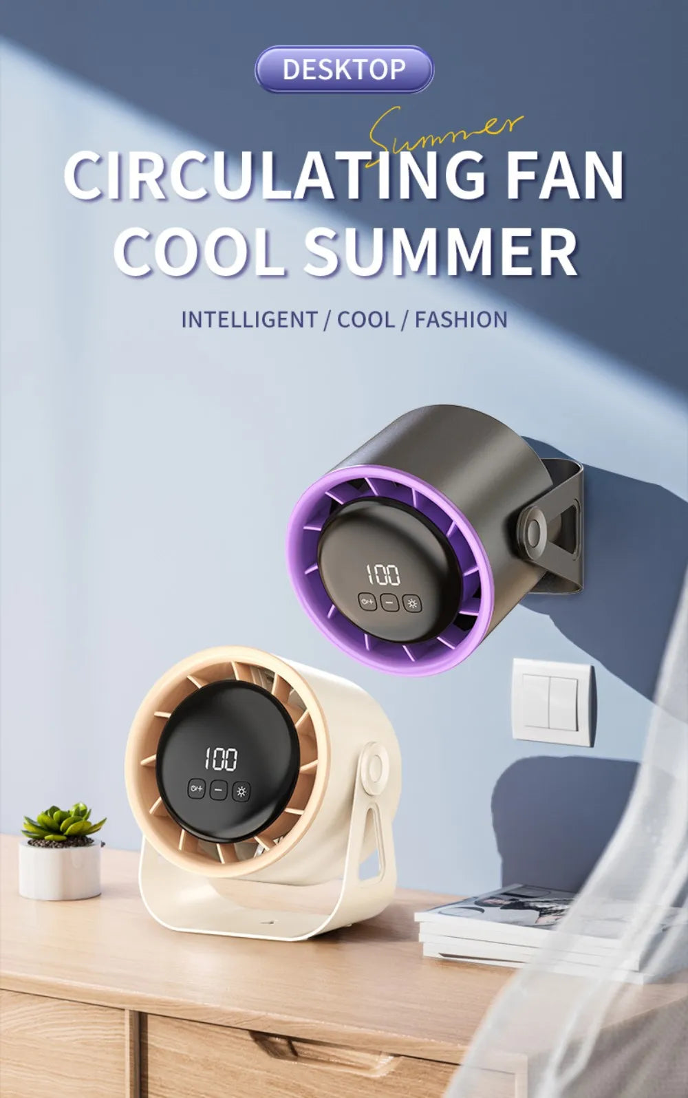 Multi-function Desktop Fan 4000mAh USB Charge Portable Wall Ceiling Fan 4-speed Adjustable Circulating Air Timed Quiet Home Fan