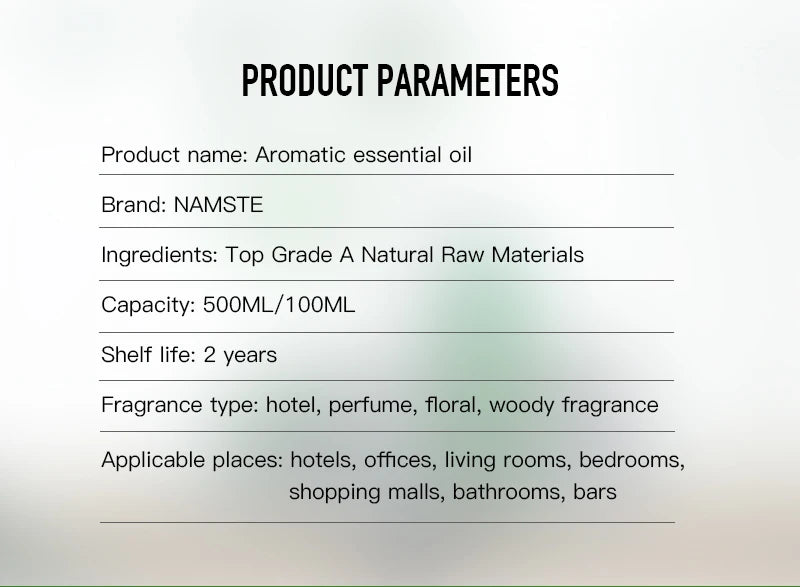 NAMSTE 100ML Hotel Diffuser Essential Oils Pure Natural Fragrance Oil Electric Smell Home Perfume Oil Aroma Scent Diffuser Oils