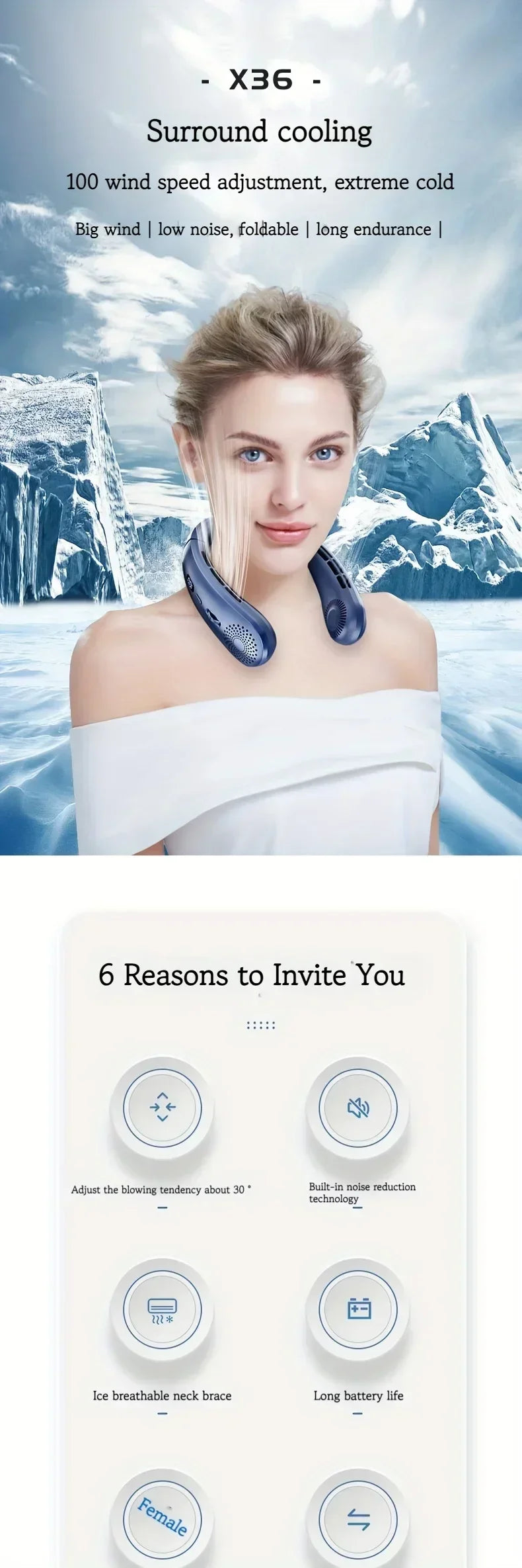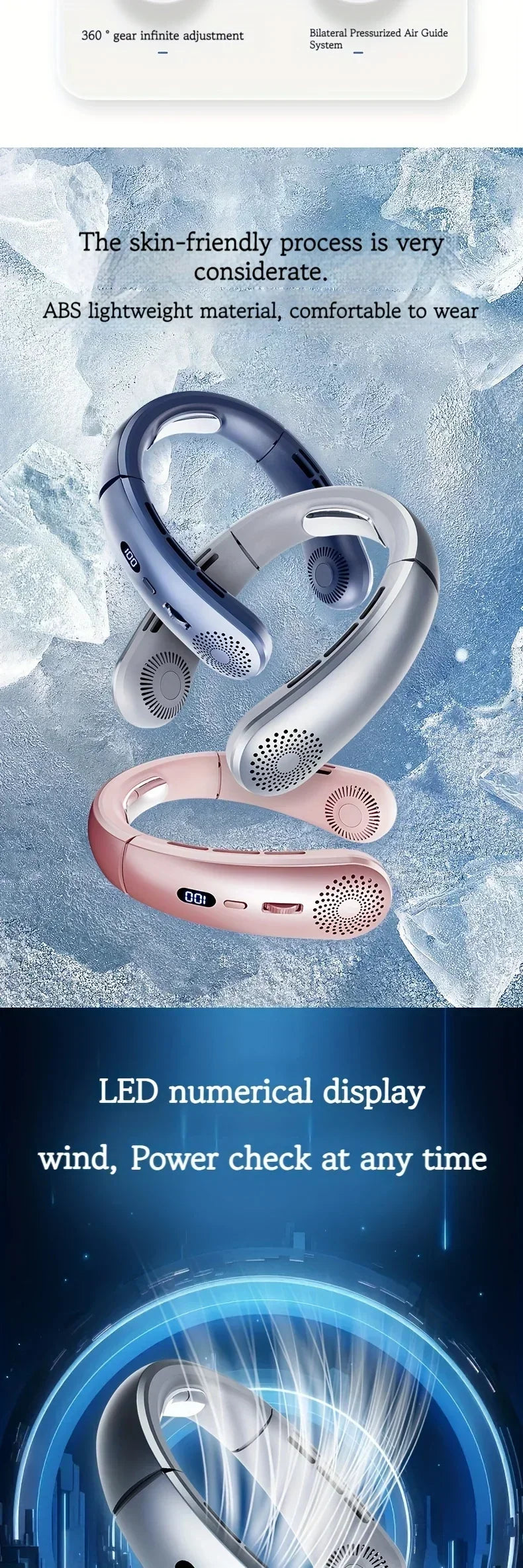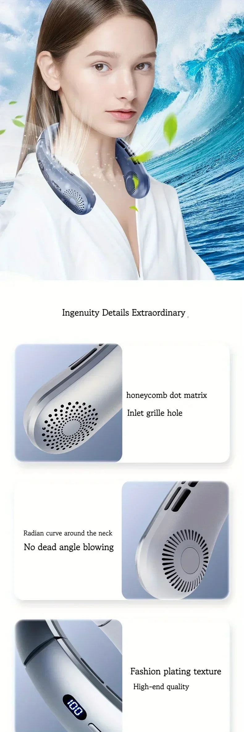 Neck Fan,Lightweight Wearable Fan, Low Noise 5 Speed Hands Free Fan, Hanging Headphone Design Sports Fan for Indoor & Outdoor