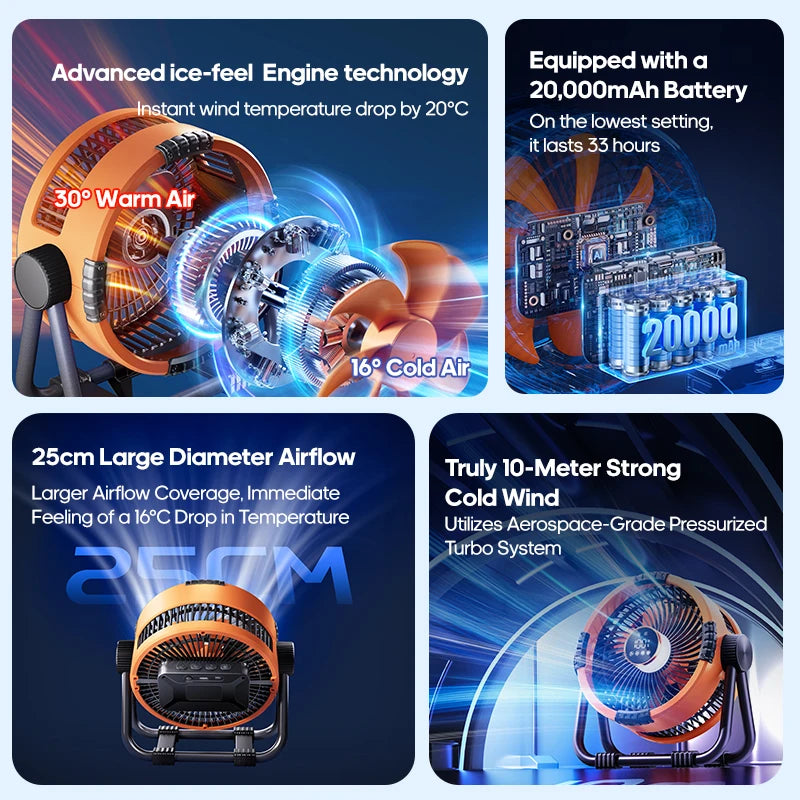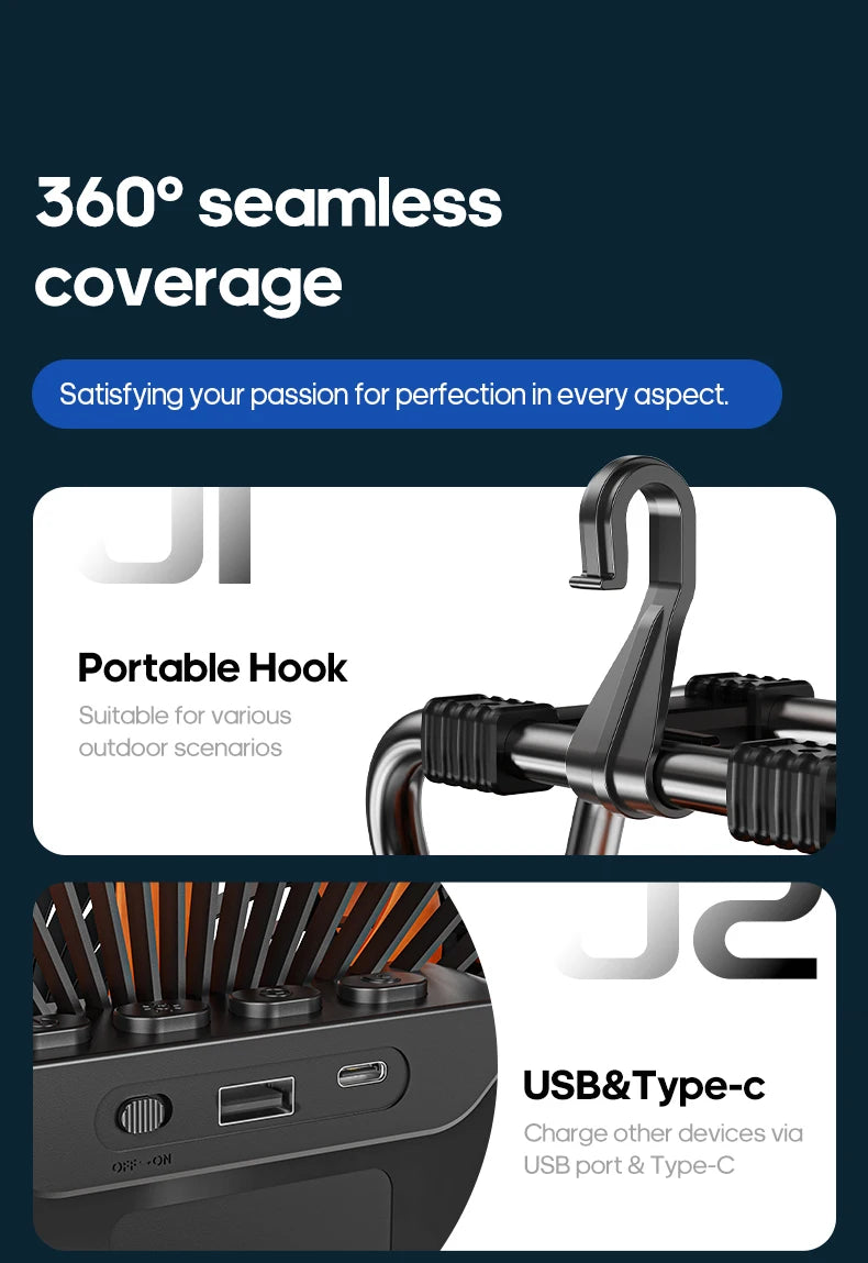 New 6 in 1 Outdoor Camping Fan 20000mAh Rechargeable Portable Wireless Tent Ceiling Fan 4 Speed Adjustment with Hook & LED Light