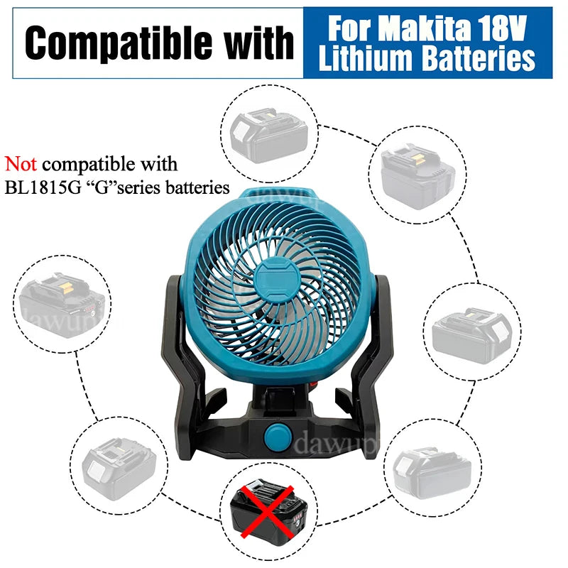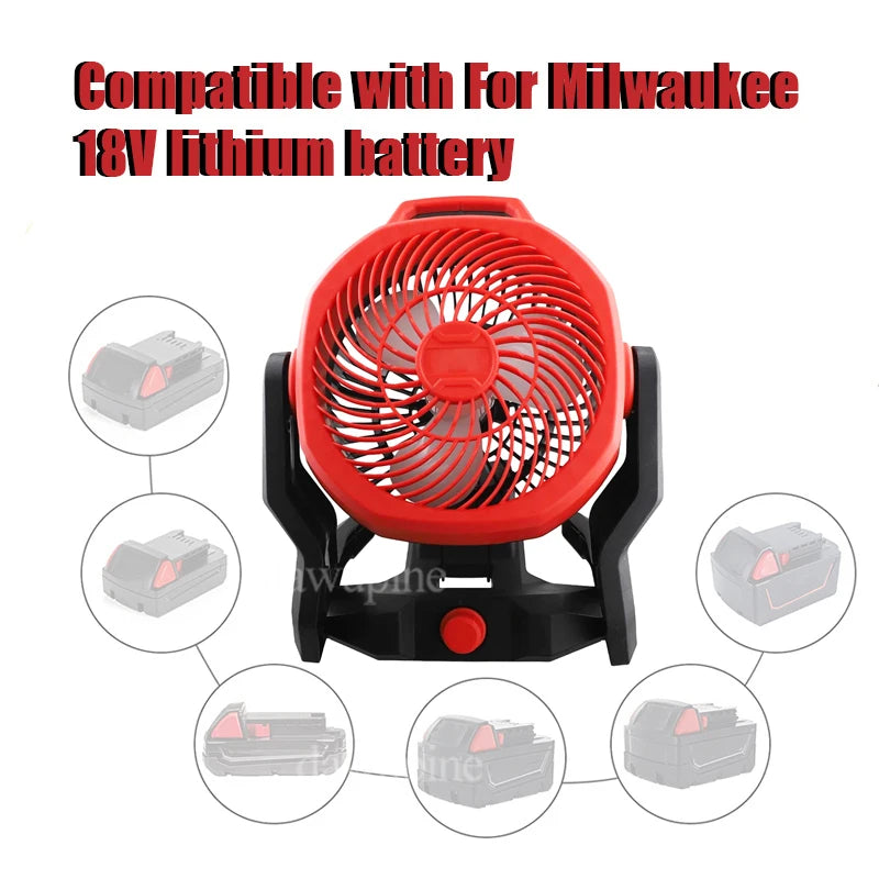 Outdoor Camping Electric Fan Desktop Floor Fan for Makita BL1830 for Milwaukee for M18 for Dewalt DCB200 18V 20V Lithium Battery