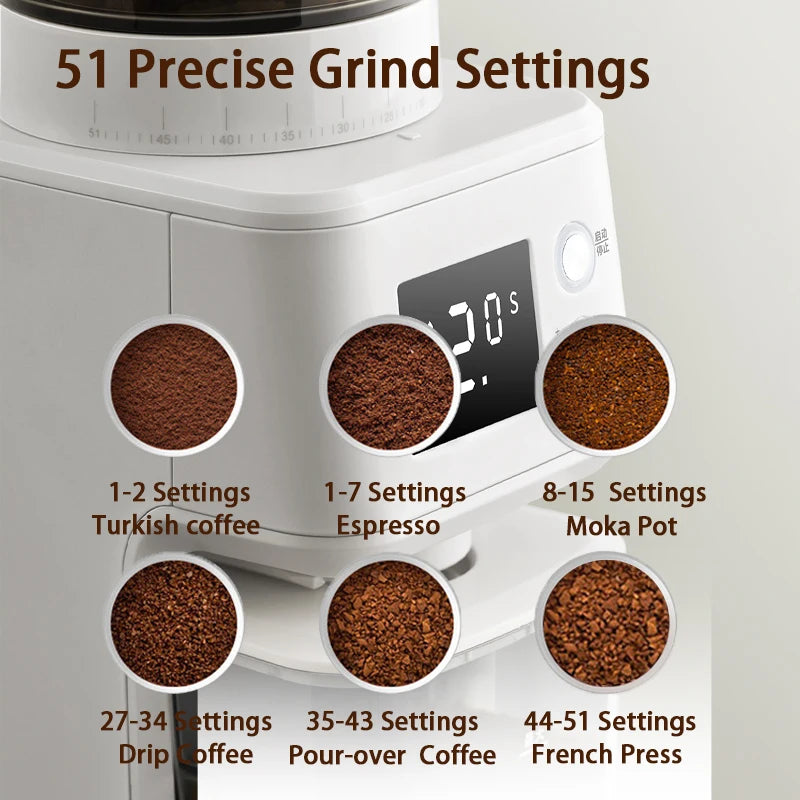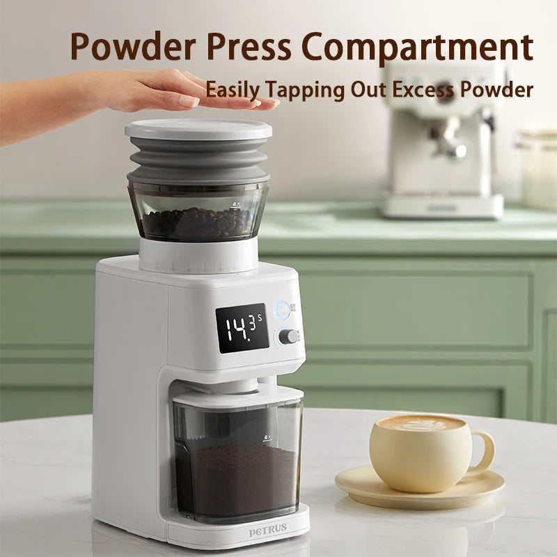 Petrus Electric Coffee Bean Grinder With 51 Precise Settings Stainless Steel Conical Burr Grinder With Digital Timer Display